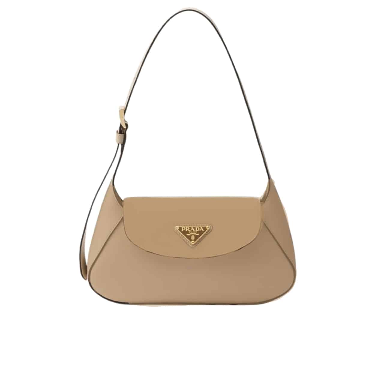 Prada Triangle Logo Shoulder Bag Beige 24 cm/ 9.4 inches