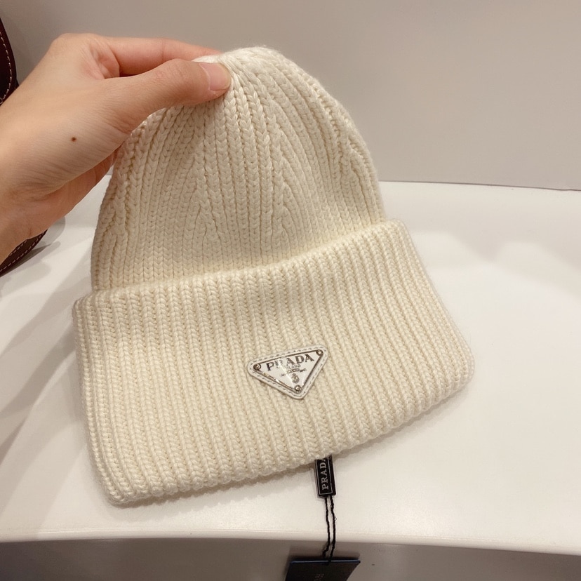 Prada Wool And Cashmere Beanie Silver White UMD489 3IM F0009 S 211