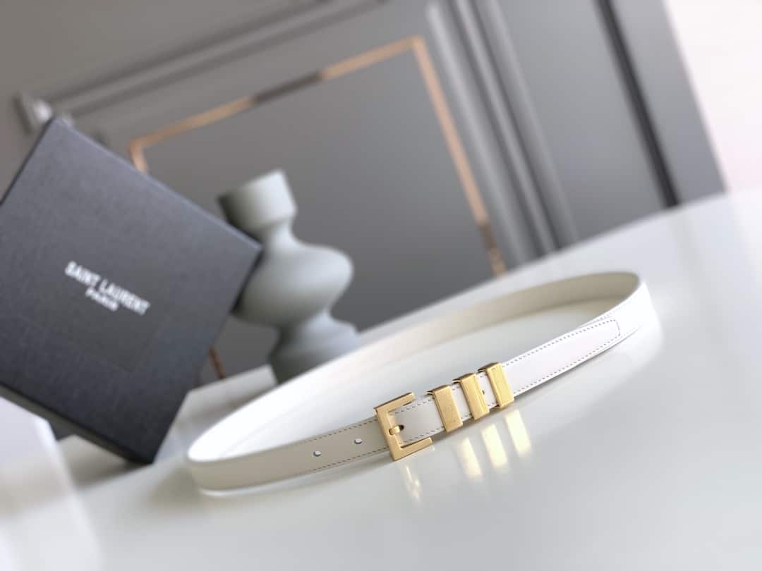 Saint Laurent Black 3 Passants Belt White And Gold 3146292551
