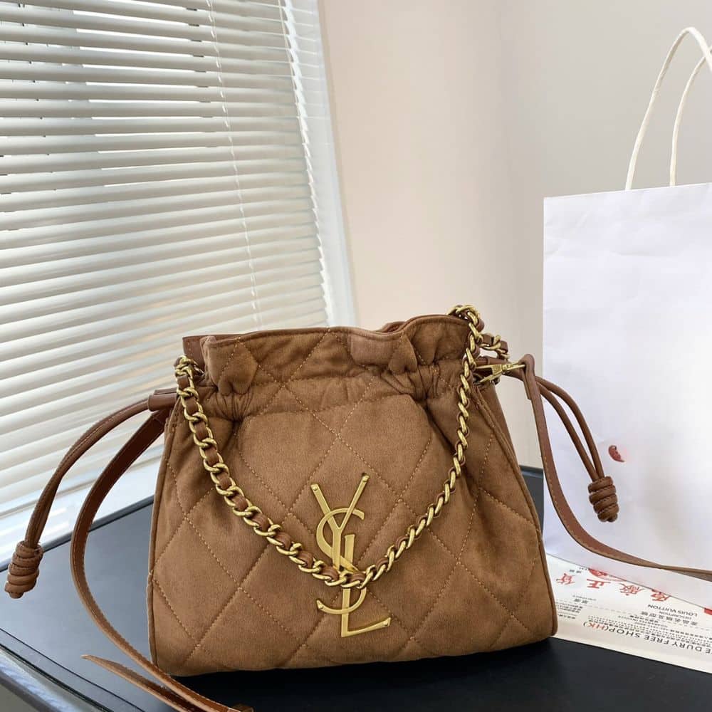 Saint Laurent Bucket Bag Quilted / Brown 29cm