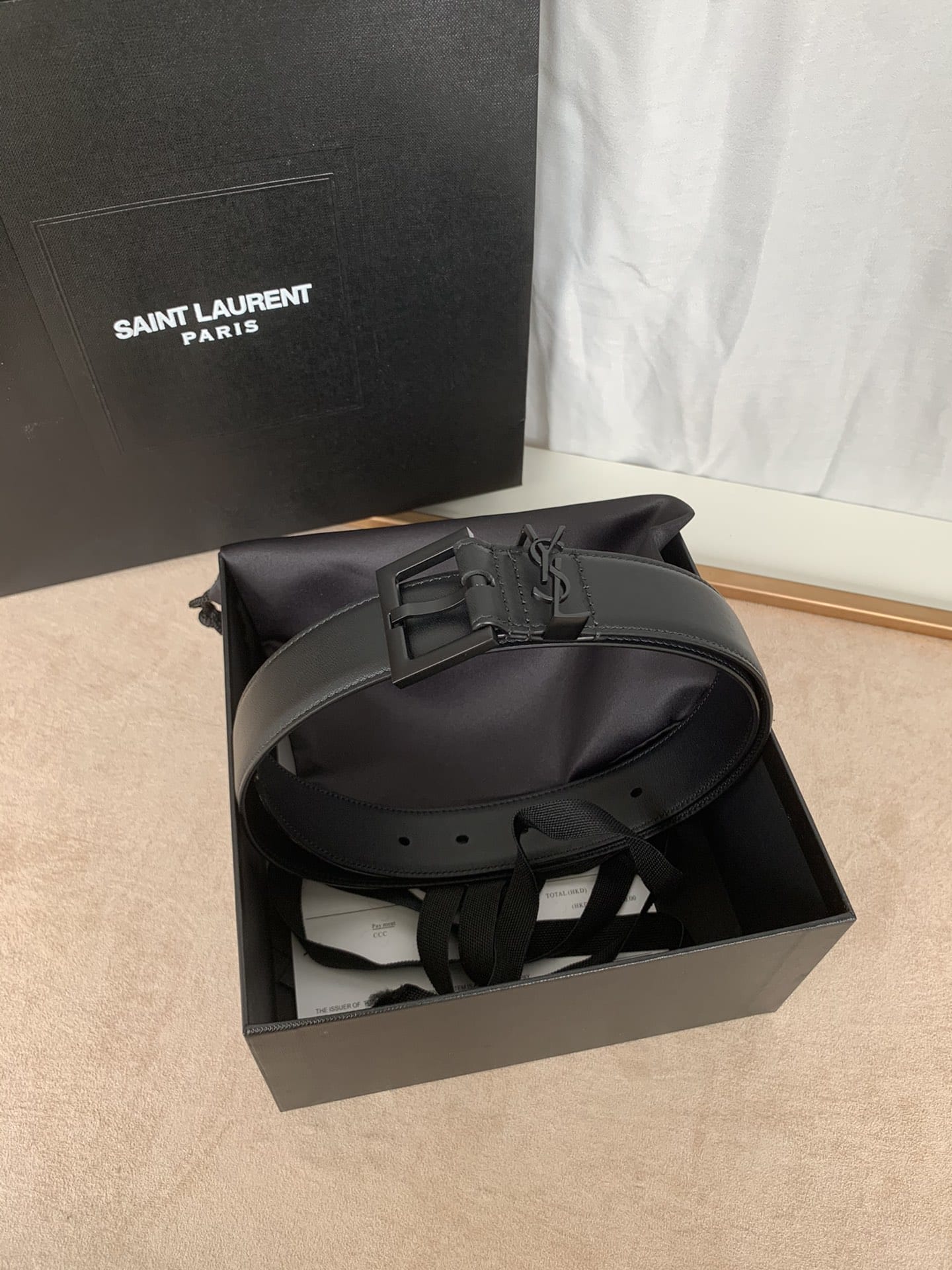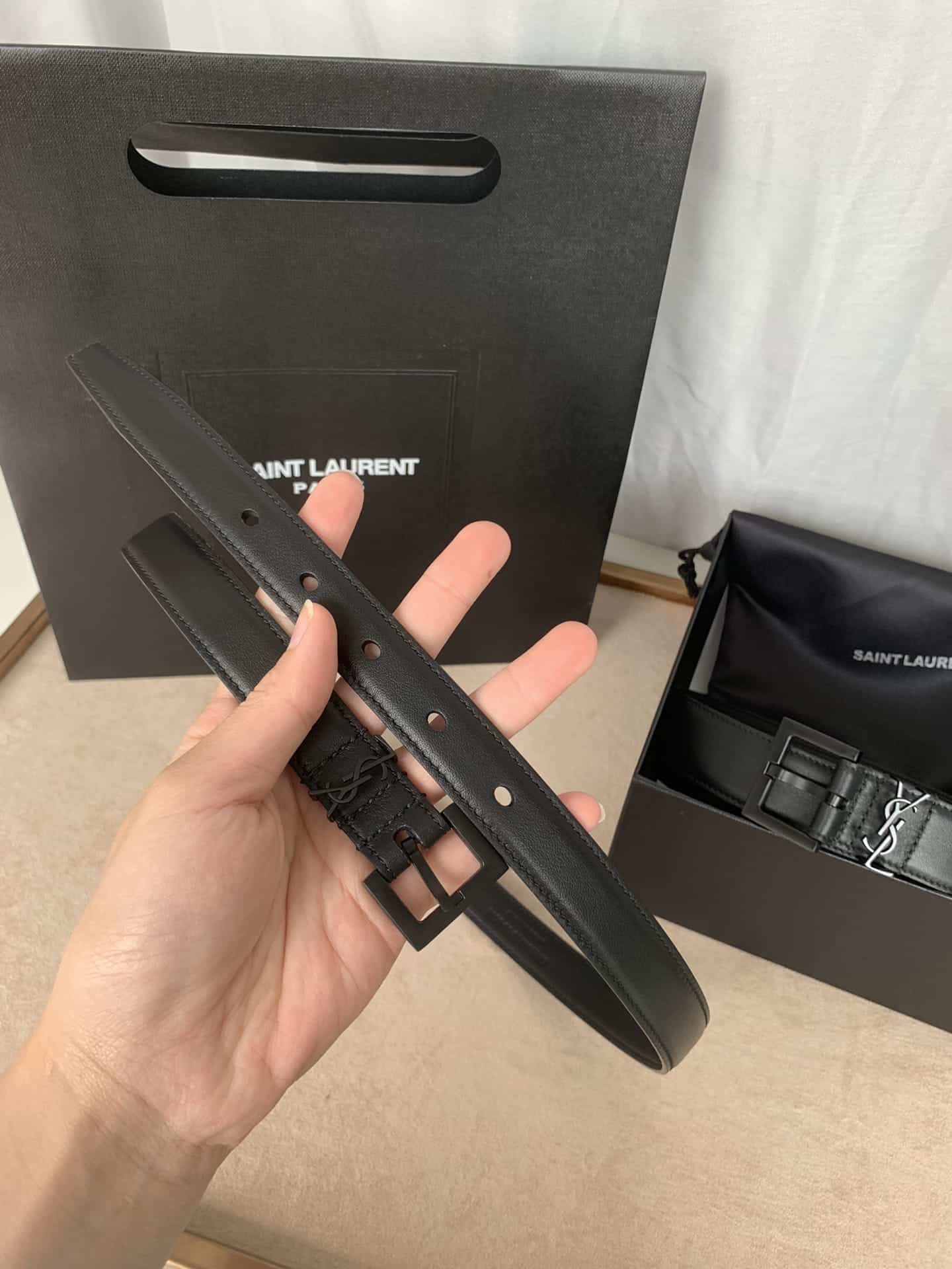 Saint Laurent Cassandre Thin Belt With Square Buckle In Shiny Box Saint Laurent Leather 554465Boo0U1000