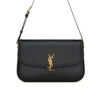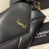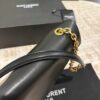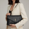 Saint Laurent Cassandre XXL Pouch On Chain / Shiny Leather / Black Leather / 13.8 x 8.7 inches / Bronze-tone hardware / Elegant Style / Bag for Women