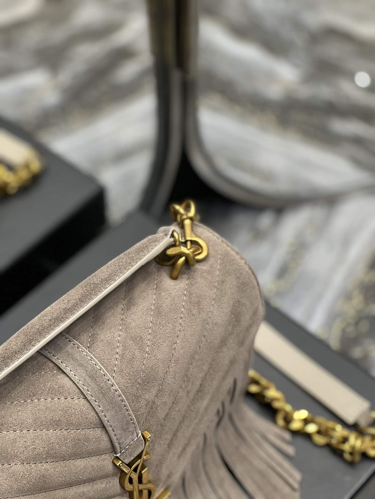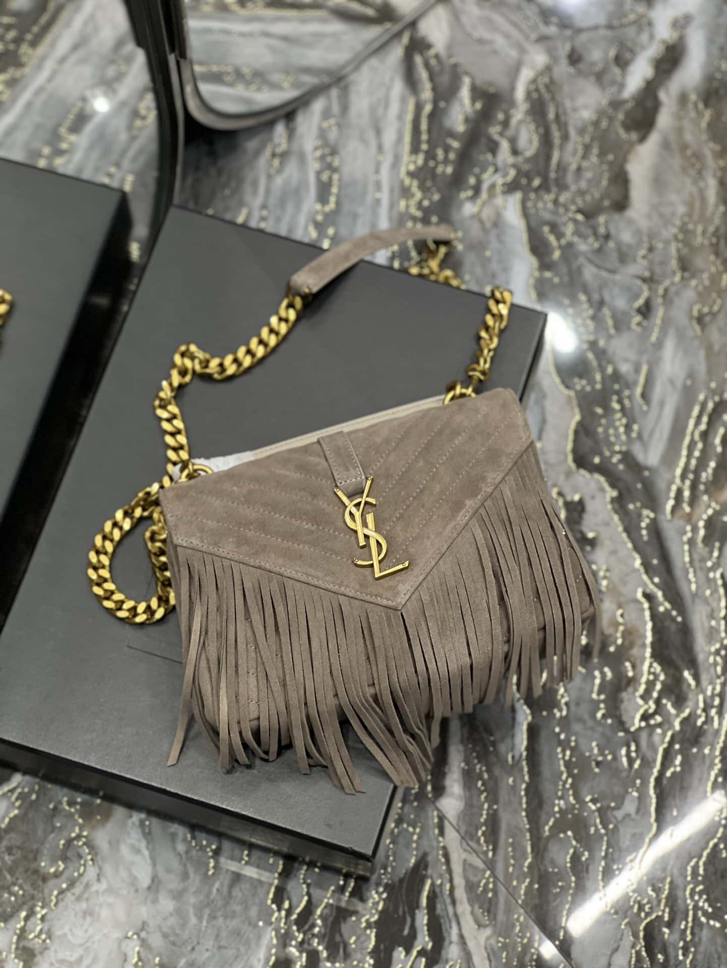 Saint Laurent College Medium Suede Shoulder Bag / Gray 24Cm
