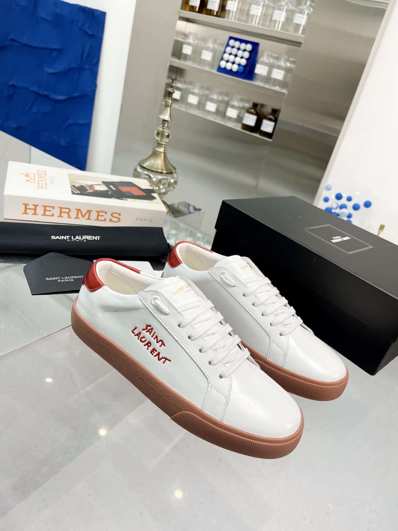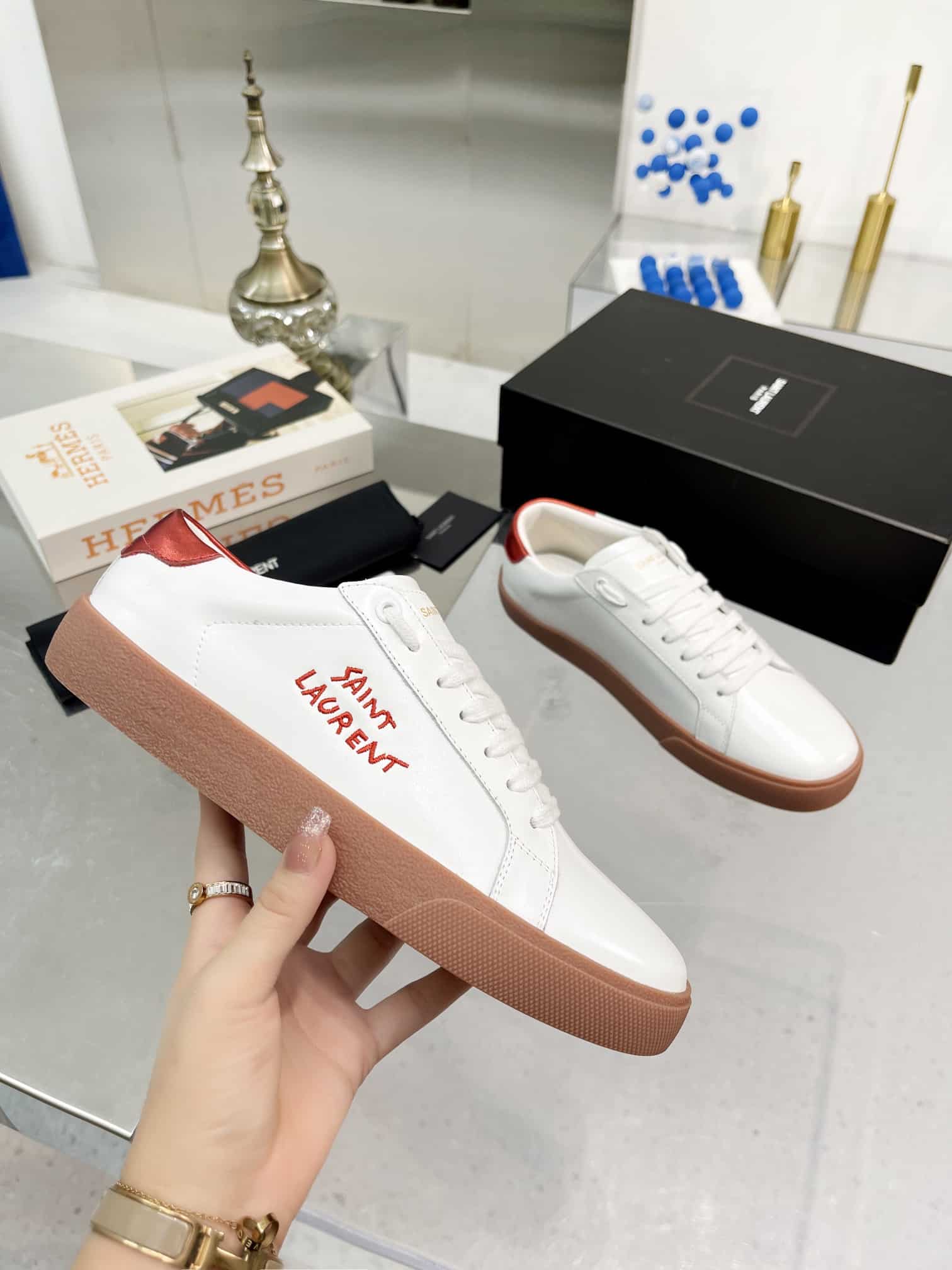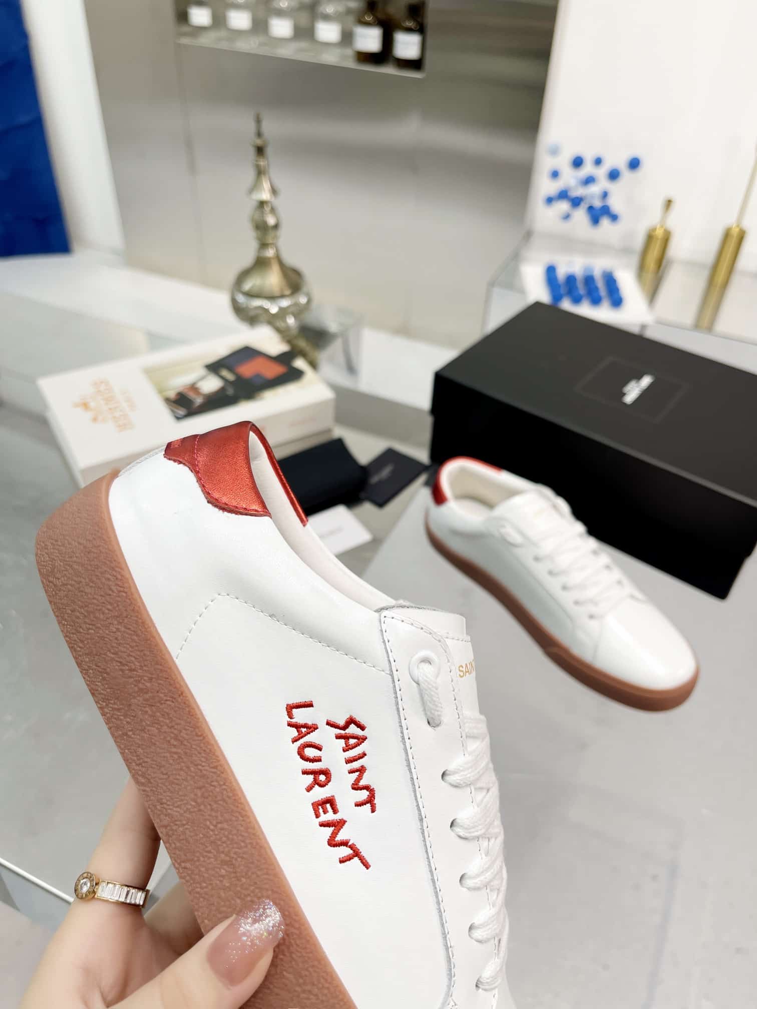 Saint Laurent Court Classic Embroidered Sneakers White And Red