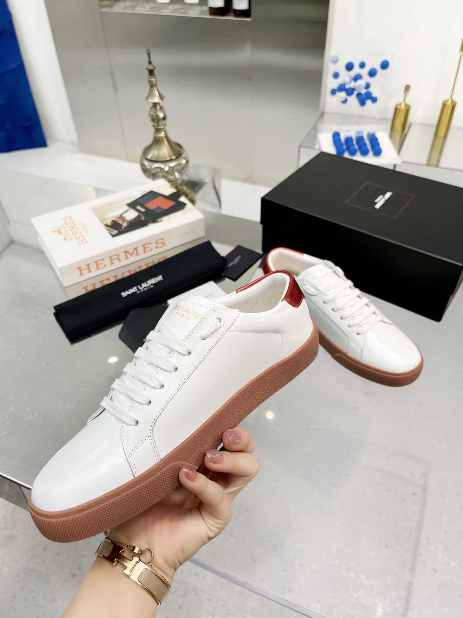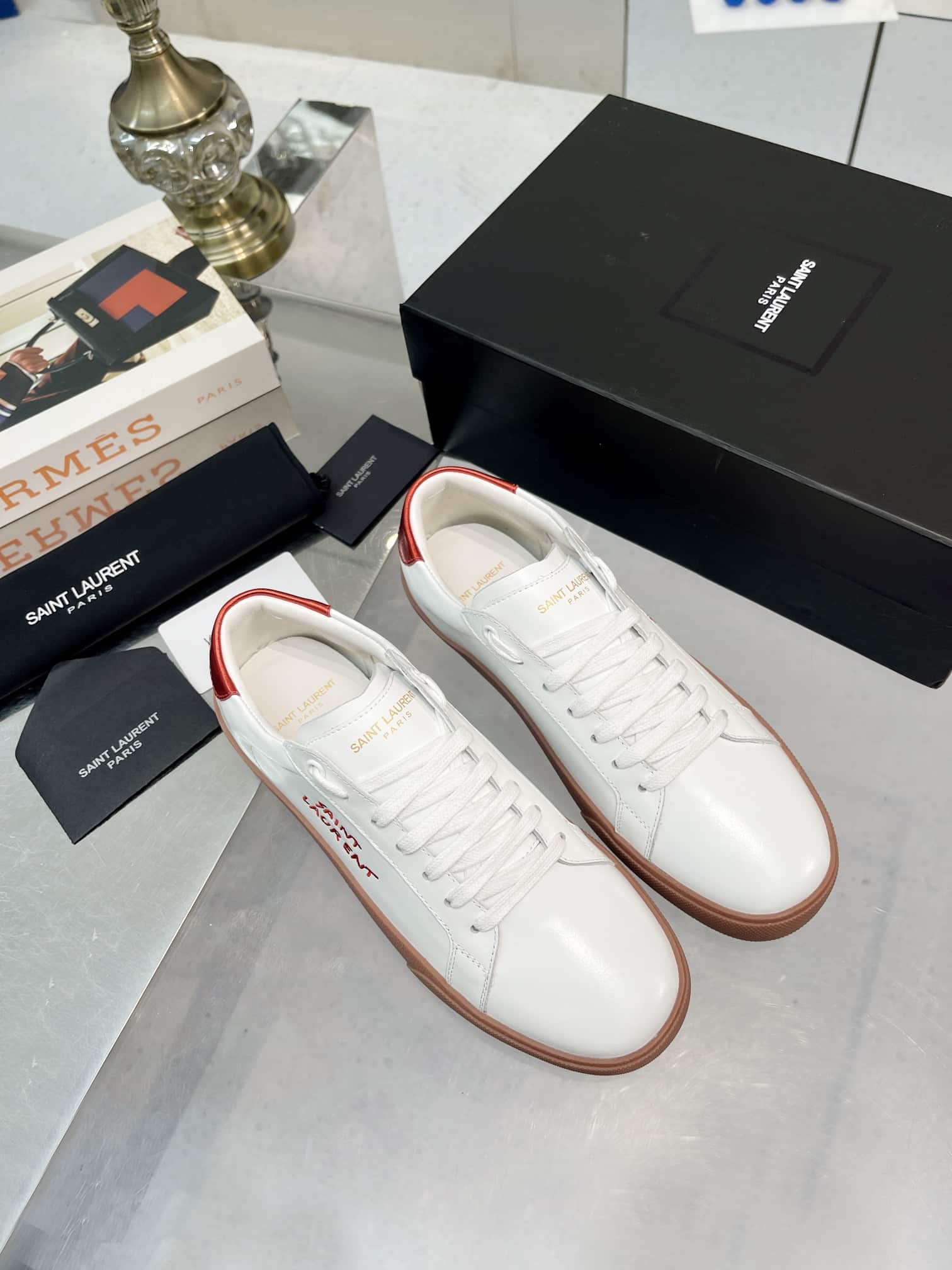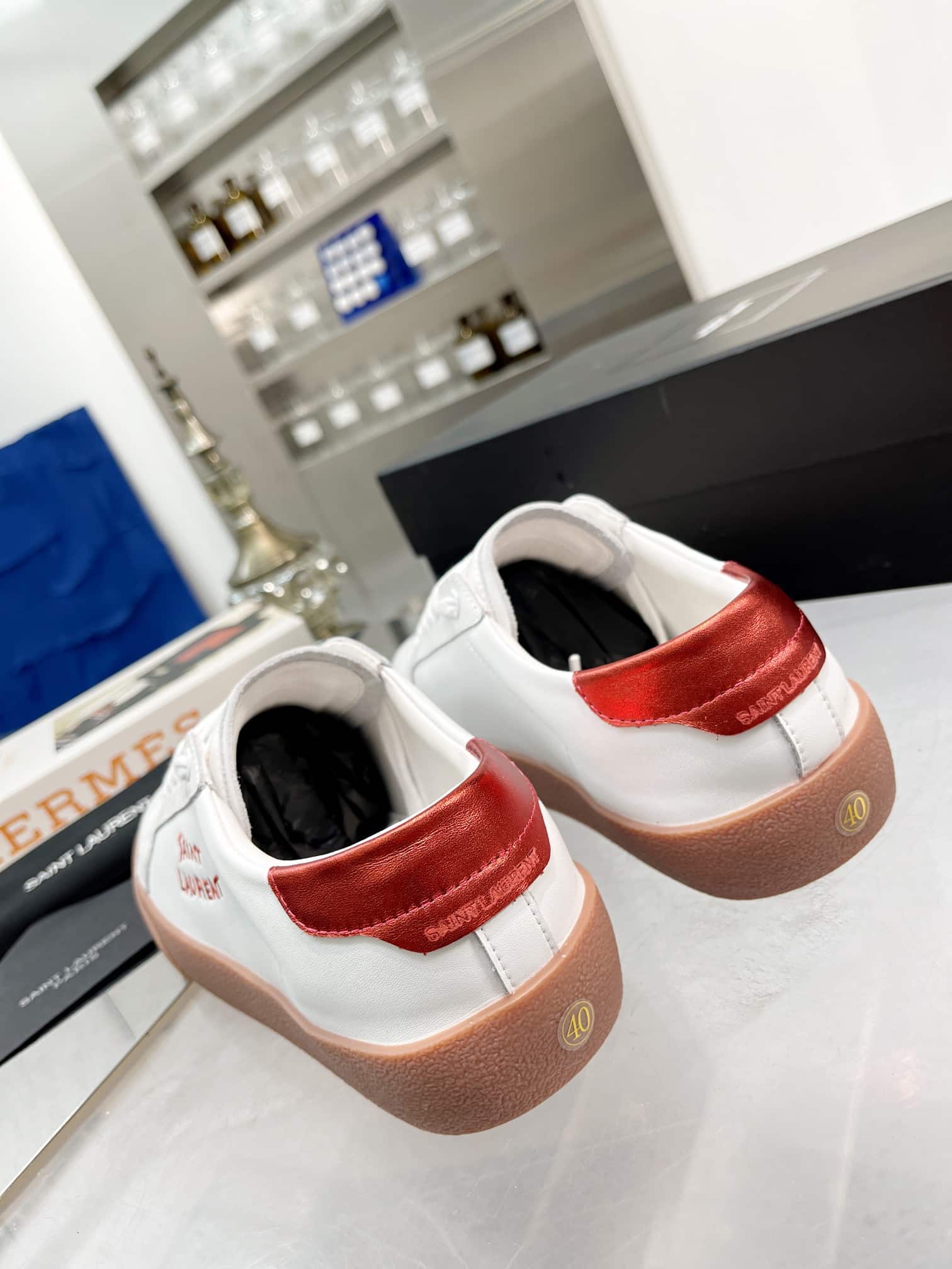 Saint Laurent Court Classic Embroidered Sneakers White And Red