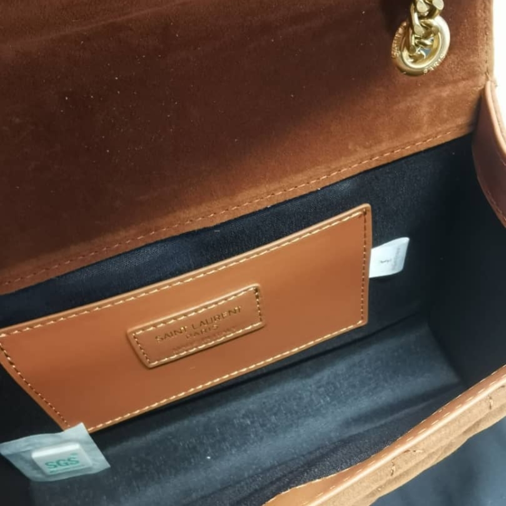 Saint Laurent Envelope Medium Matelassé Suede Shoulder Bag Brown 24Cm