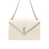 Saint Laurent Grain De Poudre Matelasse Chevron Large Triquilt Monogram Satchel White / 30 Cm / 11.8 Inches