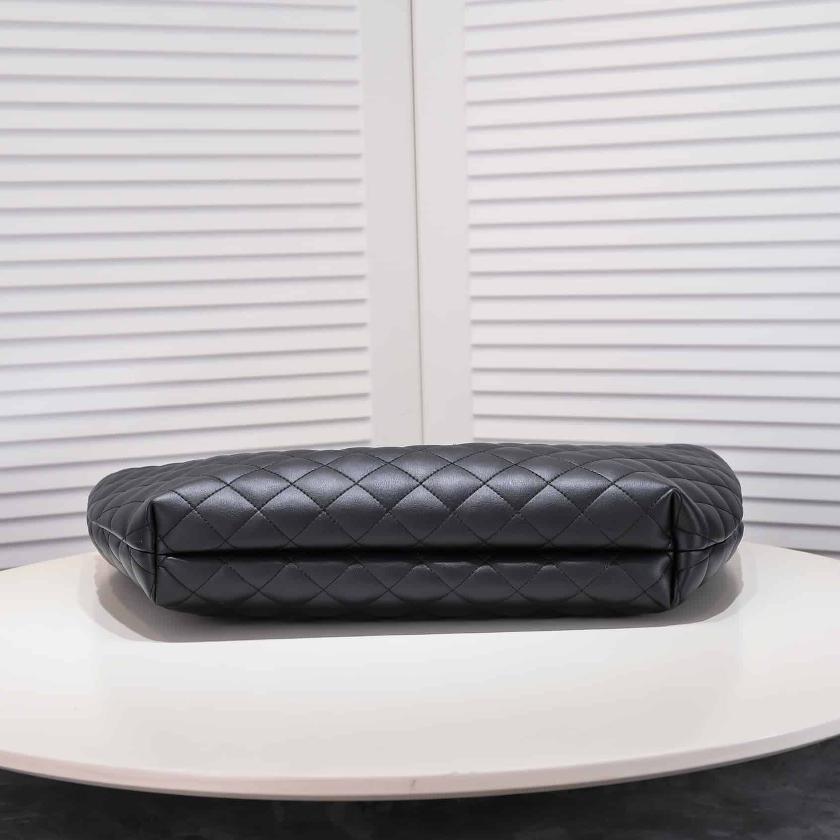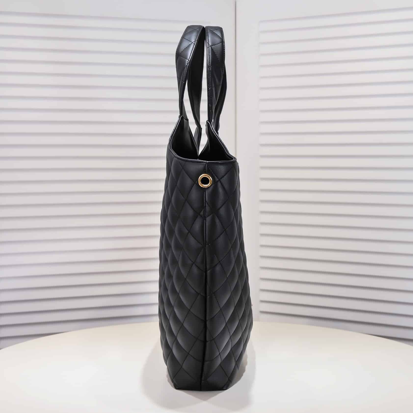 Maxi shopping bag with toggle closure, featuring a removable zipped pouch, decorated with carré-quilted overstitching and the new sculpted jewel CASSANDRE.
