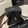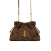 The shoulder pouch version of the JAMIE, decorated with the CASSANDRE and CARRÉ RIVE GAUCHE topstitching. This lightweight and compact bag features a chain strap for crossbody carry. Drawstring ties allow the sides to be cinched or expanded to create different silhouettes.