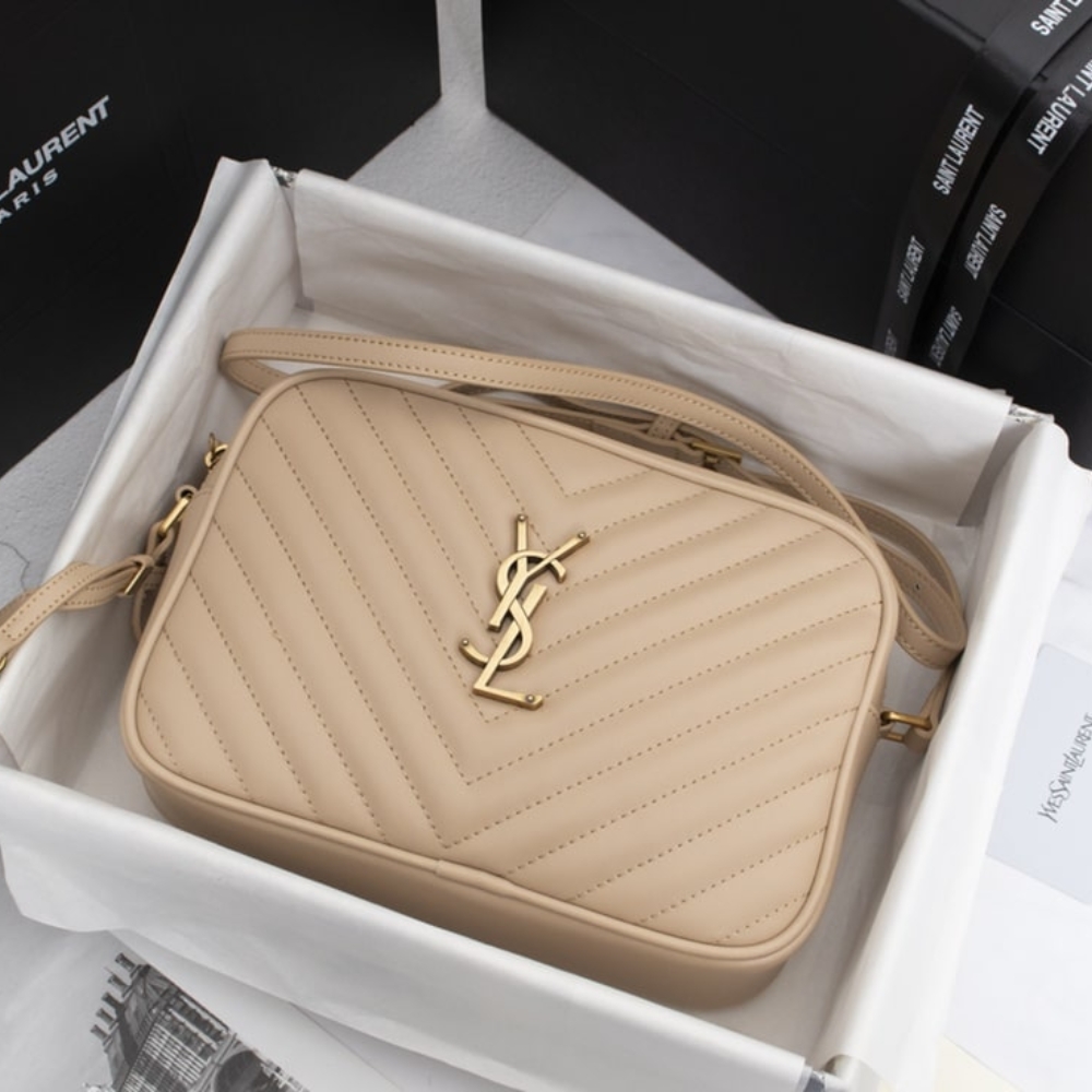 YSL Lou Camera Bag In Quilted Leather Gold Beige 612544DV7072721 / 23cm / 9 inches