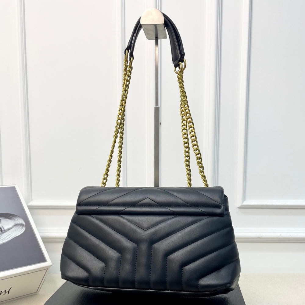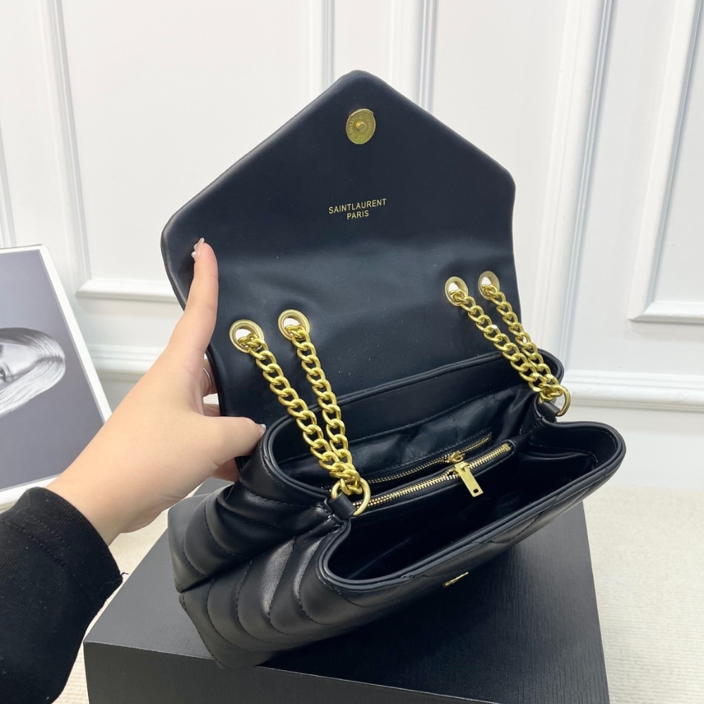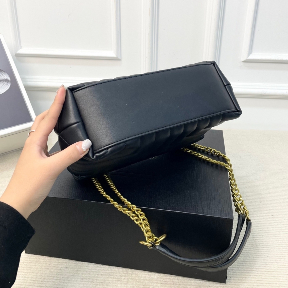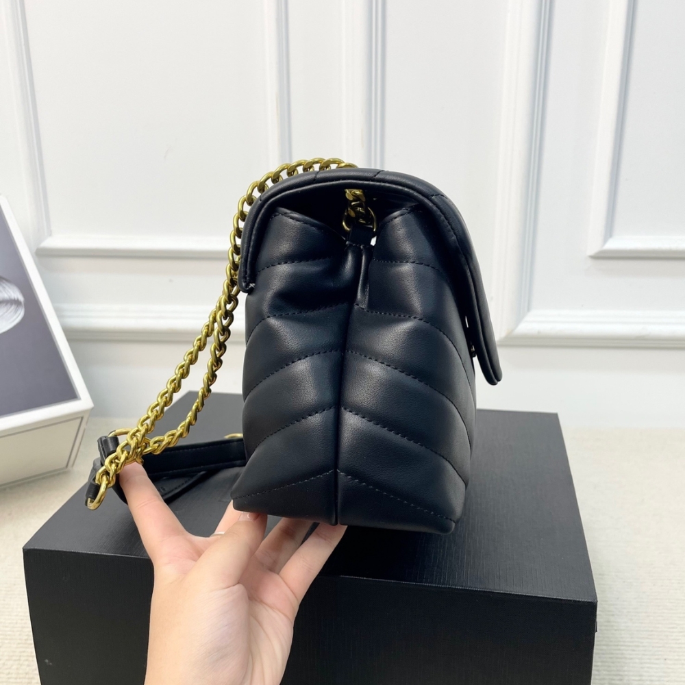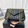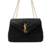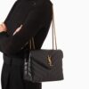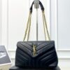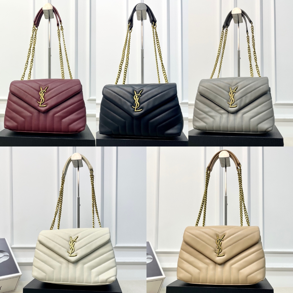 The Saint Laurent Loulou Medium in Burgundy is a sophisticated shoulder bag defined by its soft “Y” matelassé quilted leather and elegant Parisian aesthetic. It features a prominent gold-tone YSL monogram plaque and a versatile sliding chain strap that allows for both shoulder and crossbody wear. The spacious interior is divided into two main compartments by a central zip pocket, providing excellent organization for daily essentials. This medium edition perfectly balances luxurious style with practical, high-capacity functionality.