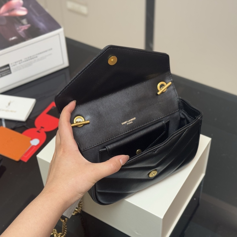 Saint Laurent Loulou In Matelassé Bag / Mini Bag / Black / 7.9 x 5.1 inches / Bronze-tone hardware / Daily Style / Bag for Women