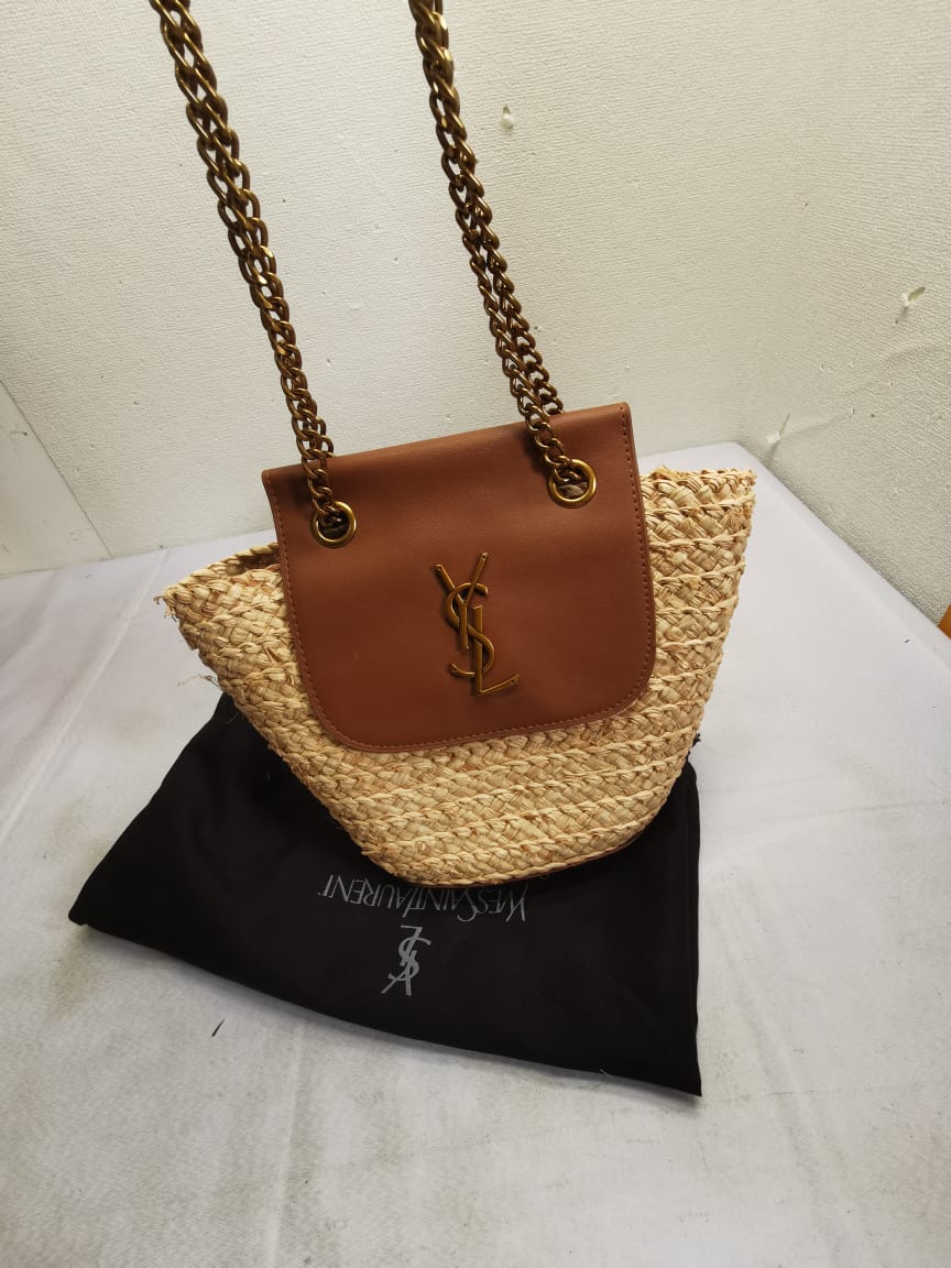 Saint Laurent//Mini Manon In Raffia And Aged Vegetable Tanned Leather//Naturel//23cm//774269GAAED9051