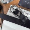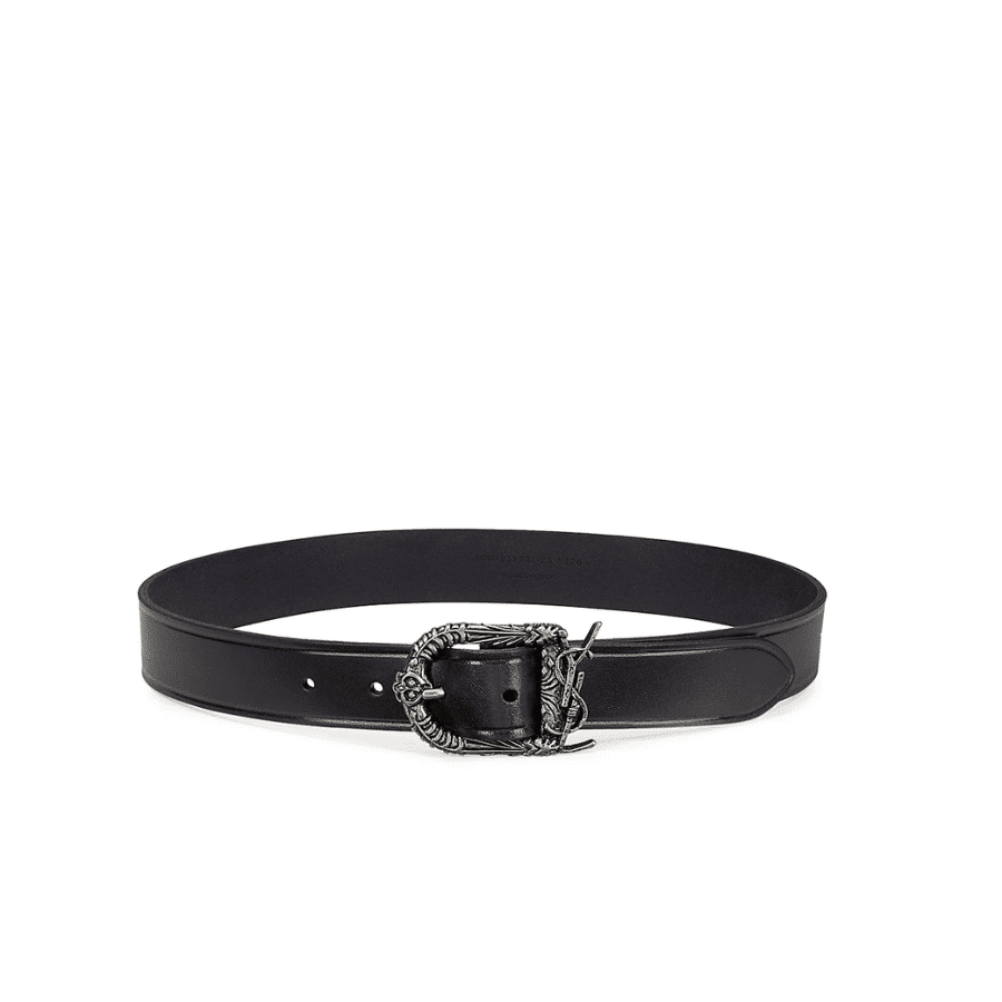 Saint Laurent Monogram Celtic Leather Black And Silver Belt 0400017970125