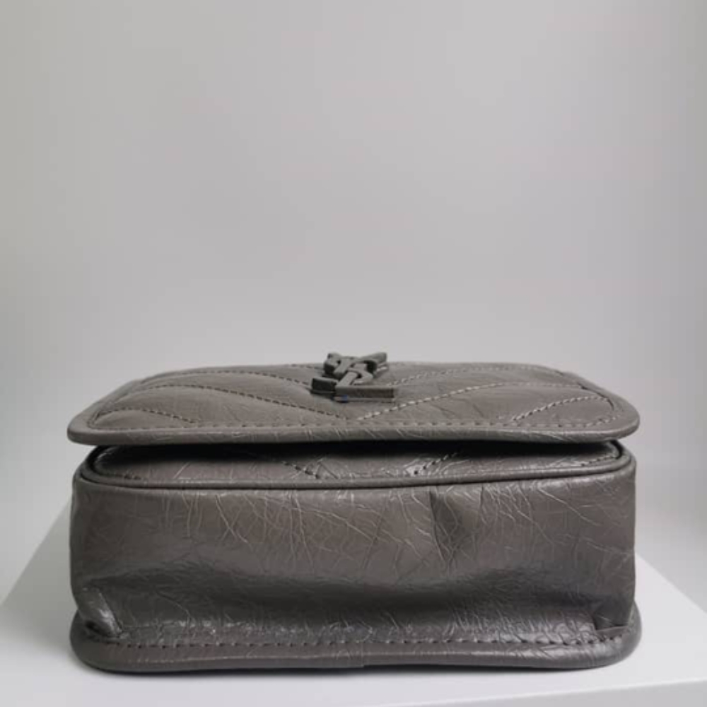 Saint Laurent Niki Vintage Leather Chain Wallet Gray / 19cm / 7.4 inches