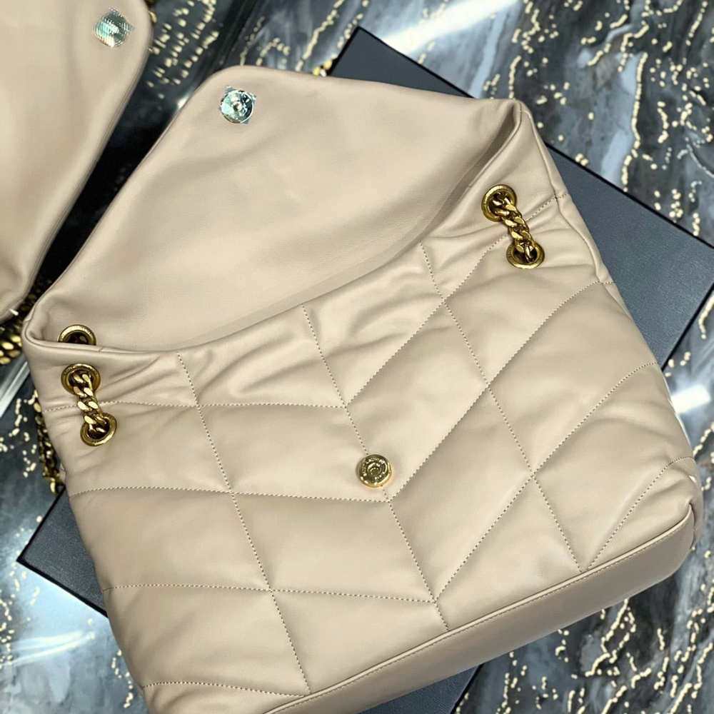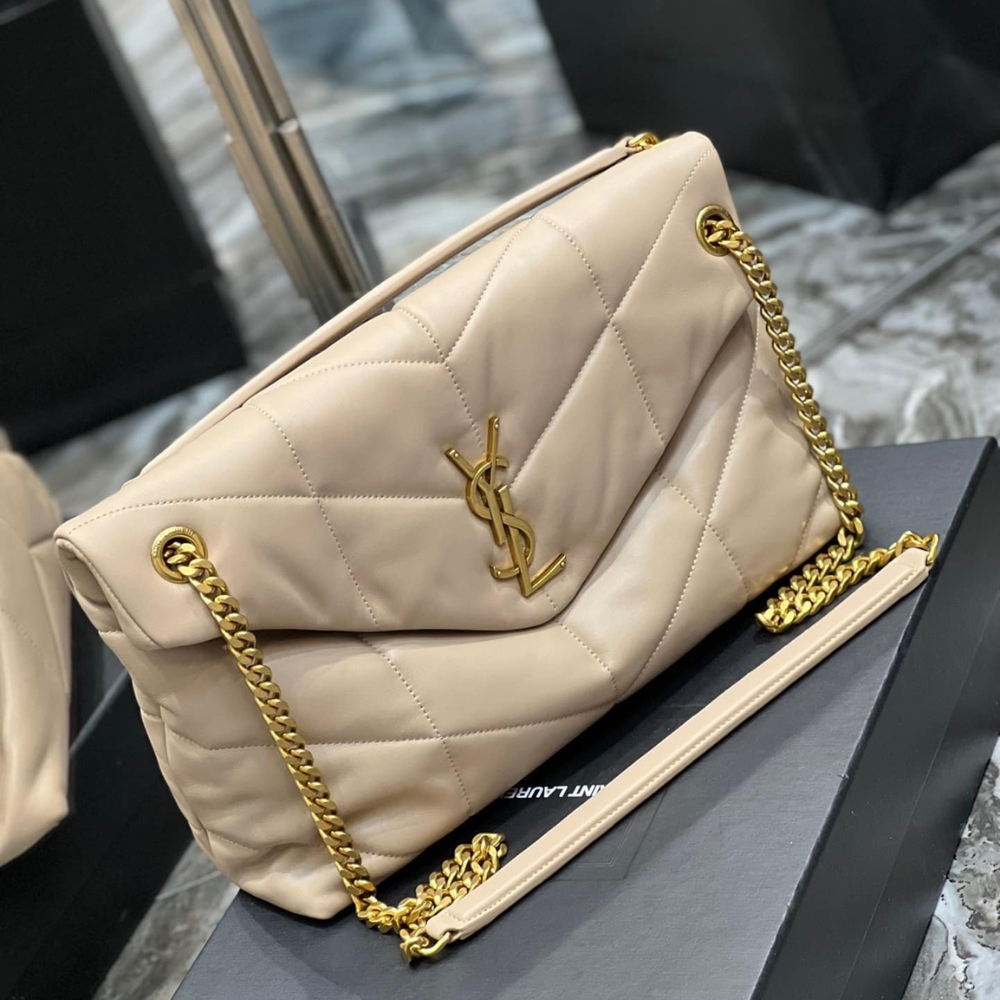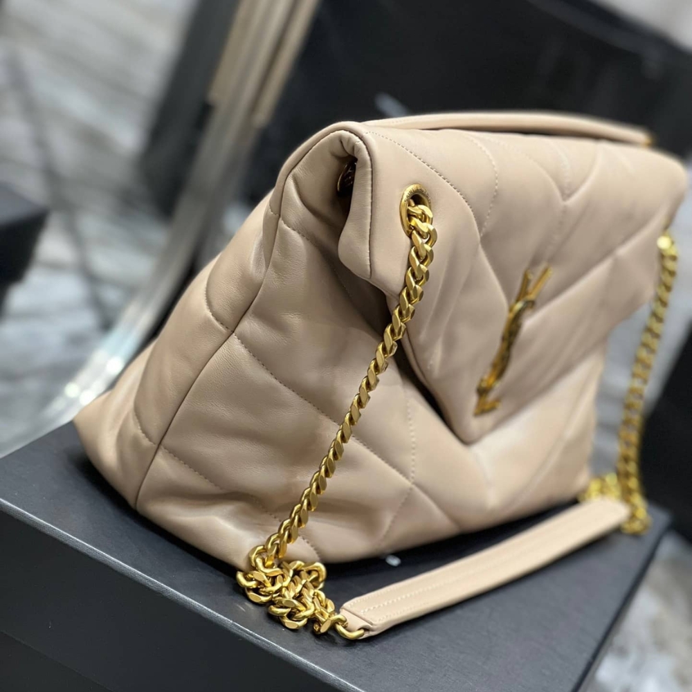 The Iconic Loulou In Puffer Version, With Chevron Quilt Overstitching. Featuring A Sliding Chain Strap That Can Be Worn On The Shoulder Or Crossbody.