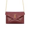 Saint Laurent Small Cassandre Chain Pouch / Shiny Leather / Burgundy Dark Red / 7.5 x 4.7 x 1.2 inches / Gold-tone hardware / Chain Pouch / Crossbody Bags