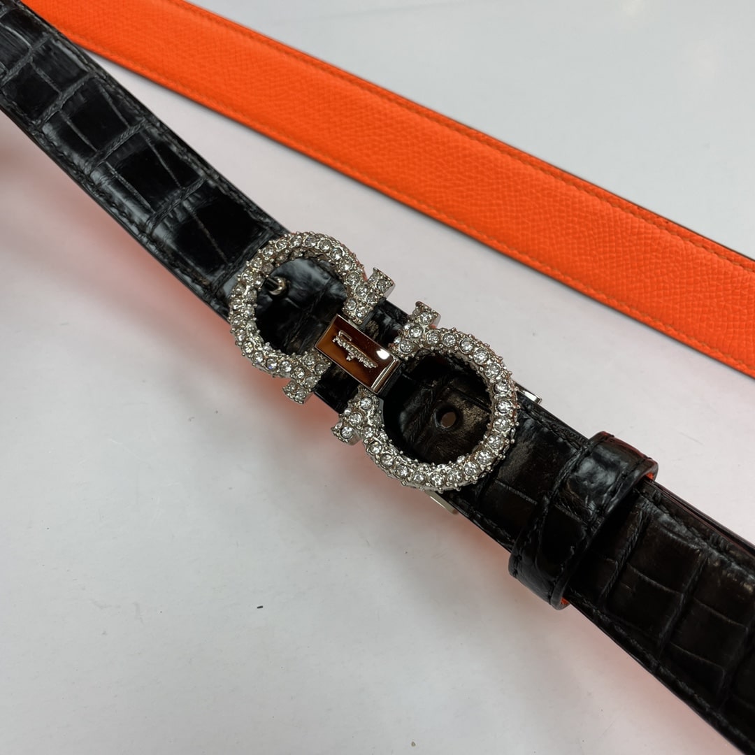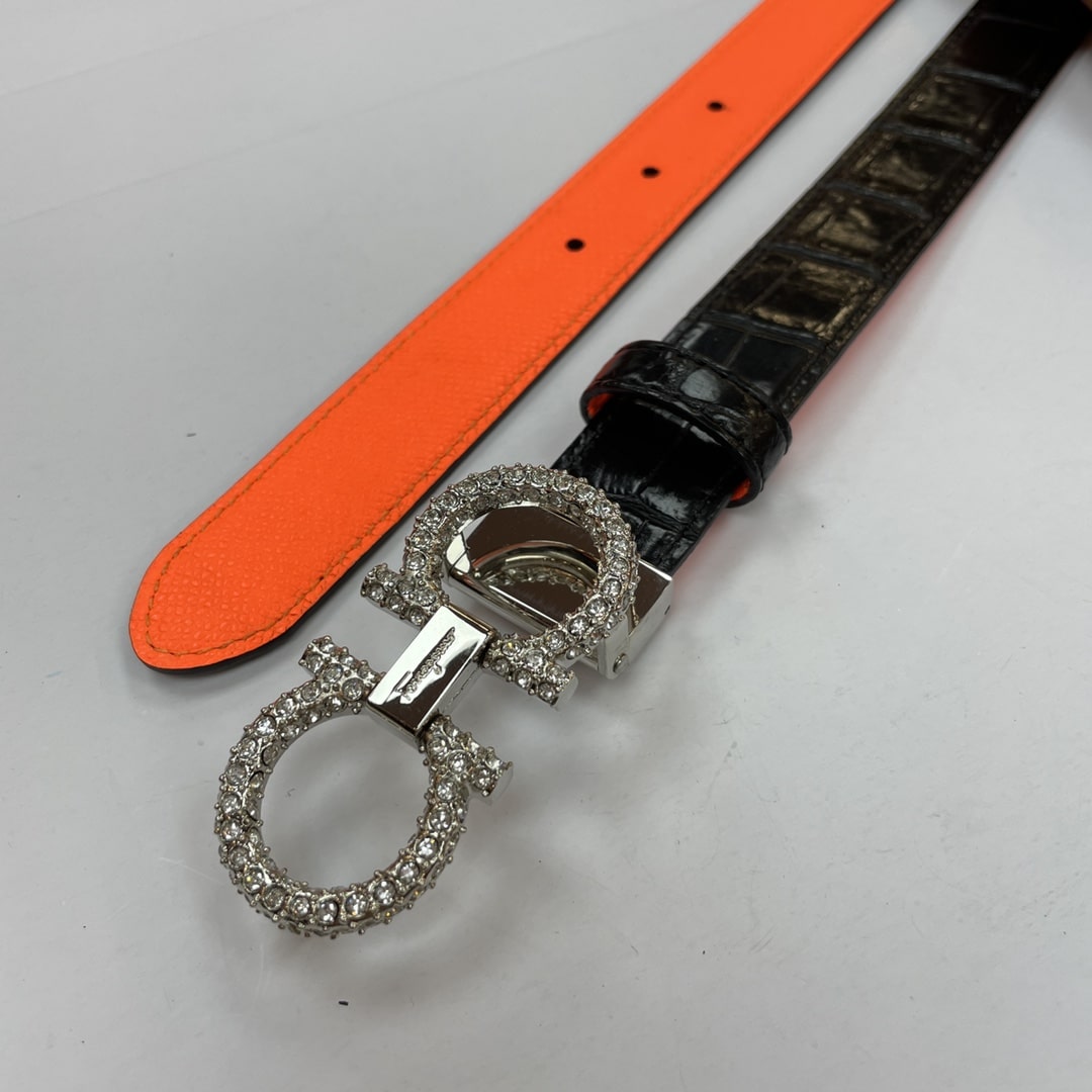 Salvatore Ferragamo Gancini Leather Belt With Silver Metal Pearls Buckle 2.5Cm