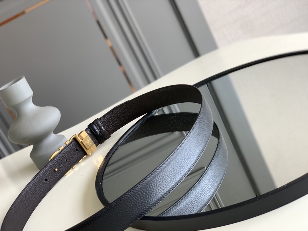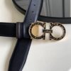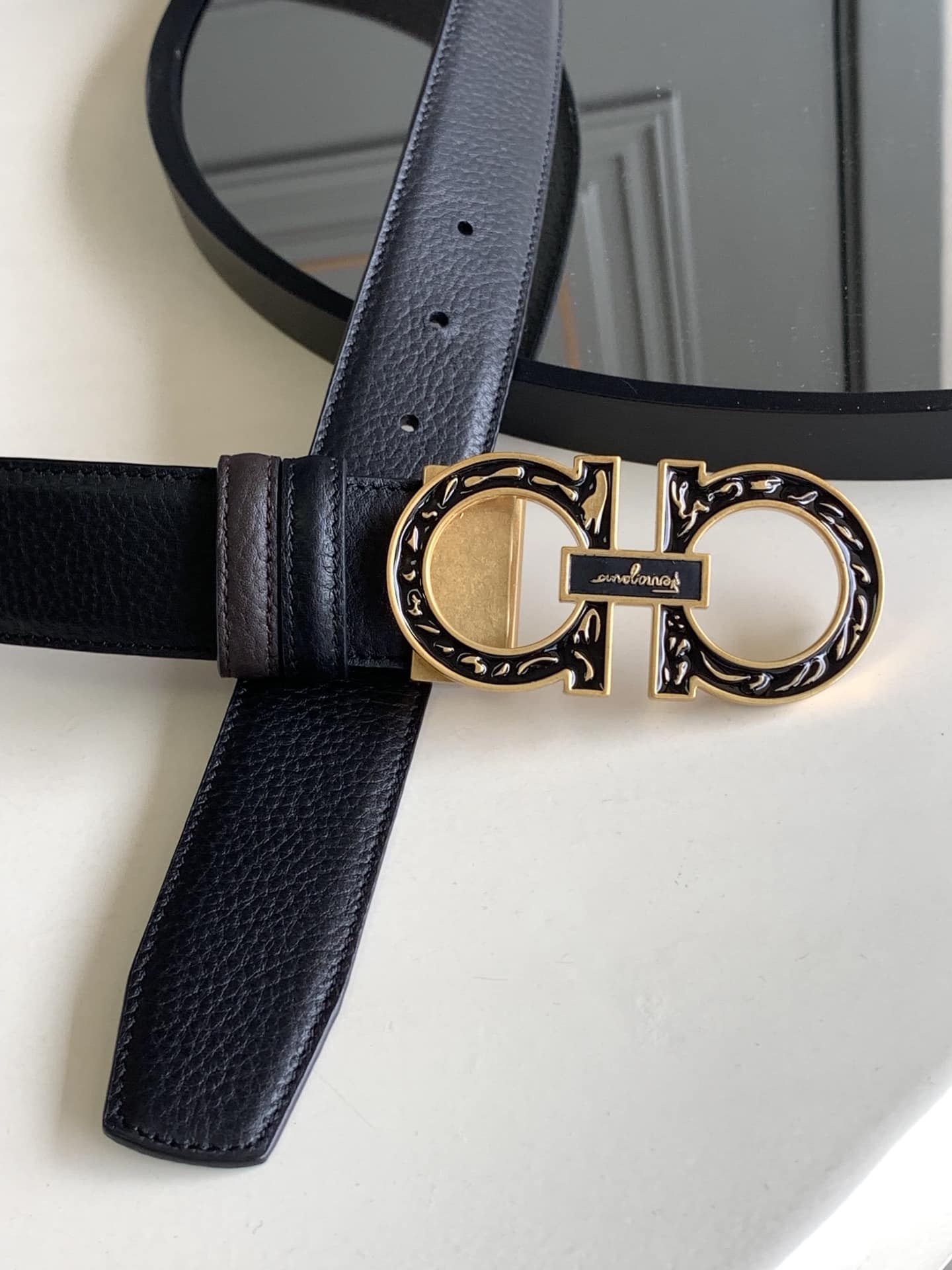 Salvatore Ferragamo Reversible And Gancini Gold Pattern Belt 3.5Cm