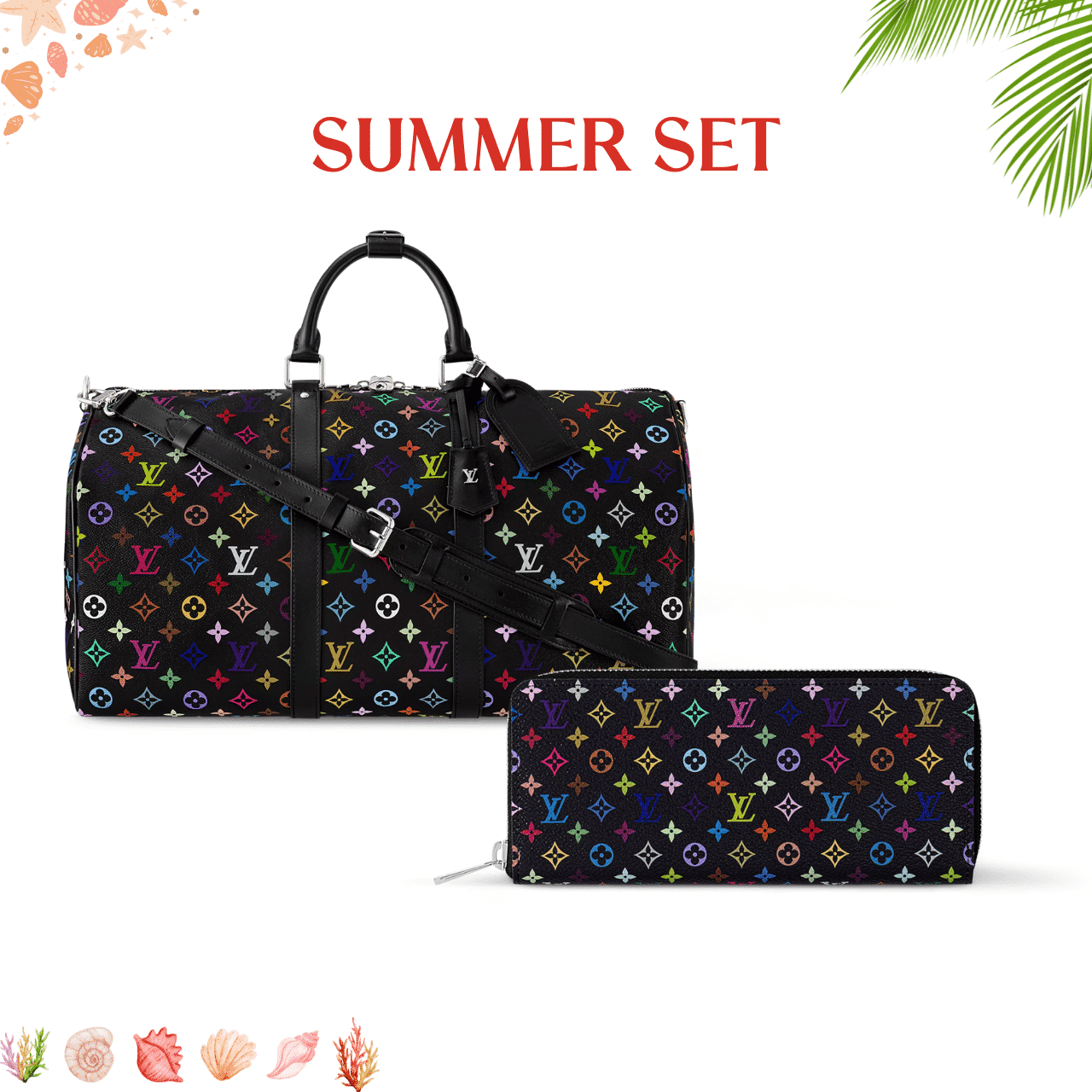 LOUIS VUITTON X TAKASHI MURAKAMI KEEPALL BANDOULIÈRE BLACK MULTICOLORED 45CM