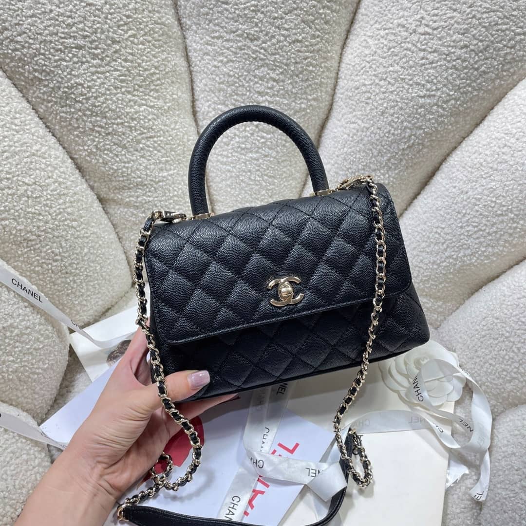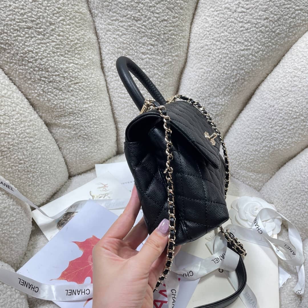 Chanel Coco Small Handle Flap Bag In Black / 9.1 inches / Fit Daily Essentials / Daily Bags / Can use handle or crossbody bag