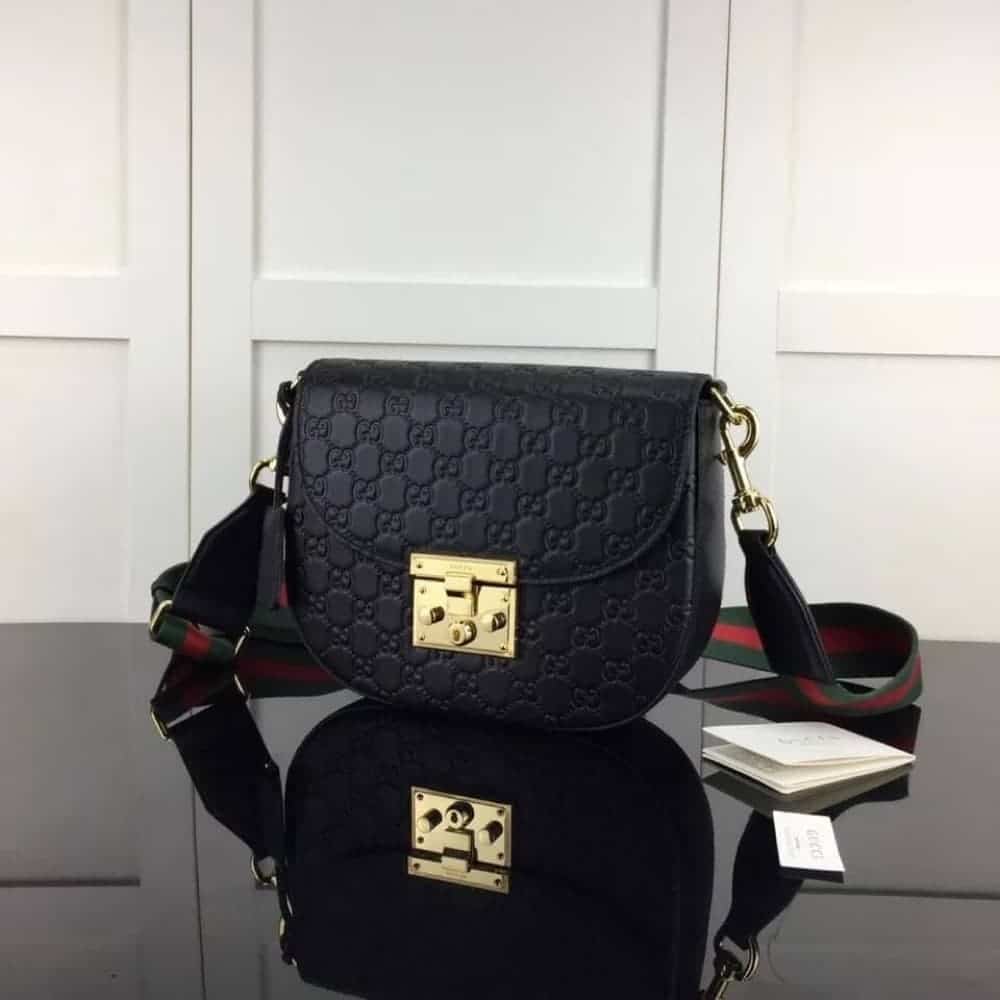 Gucci Padlock Signature Leather Shoulder Bag Black/ 25 cm/ 9.8 inches
