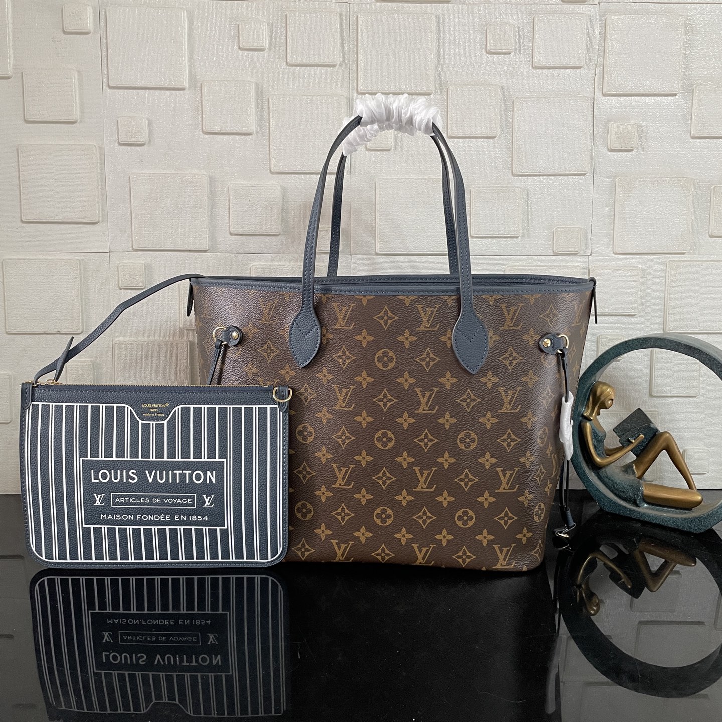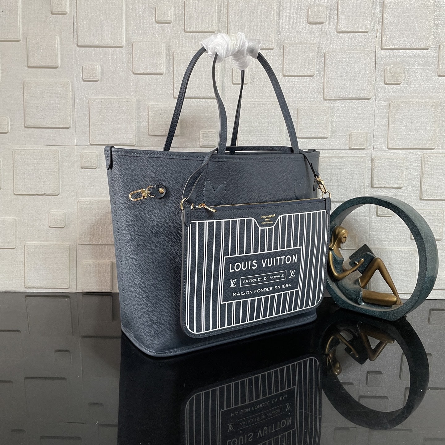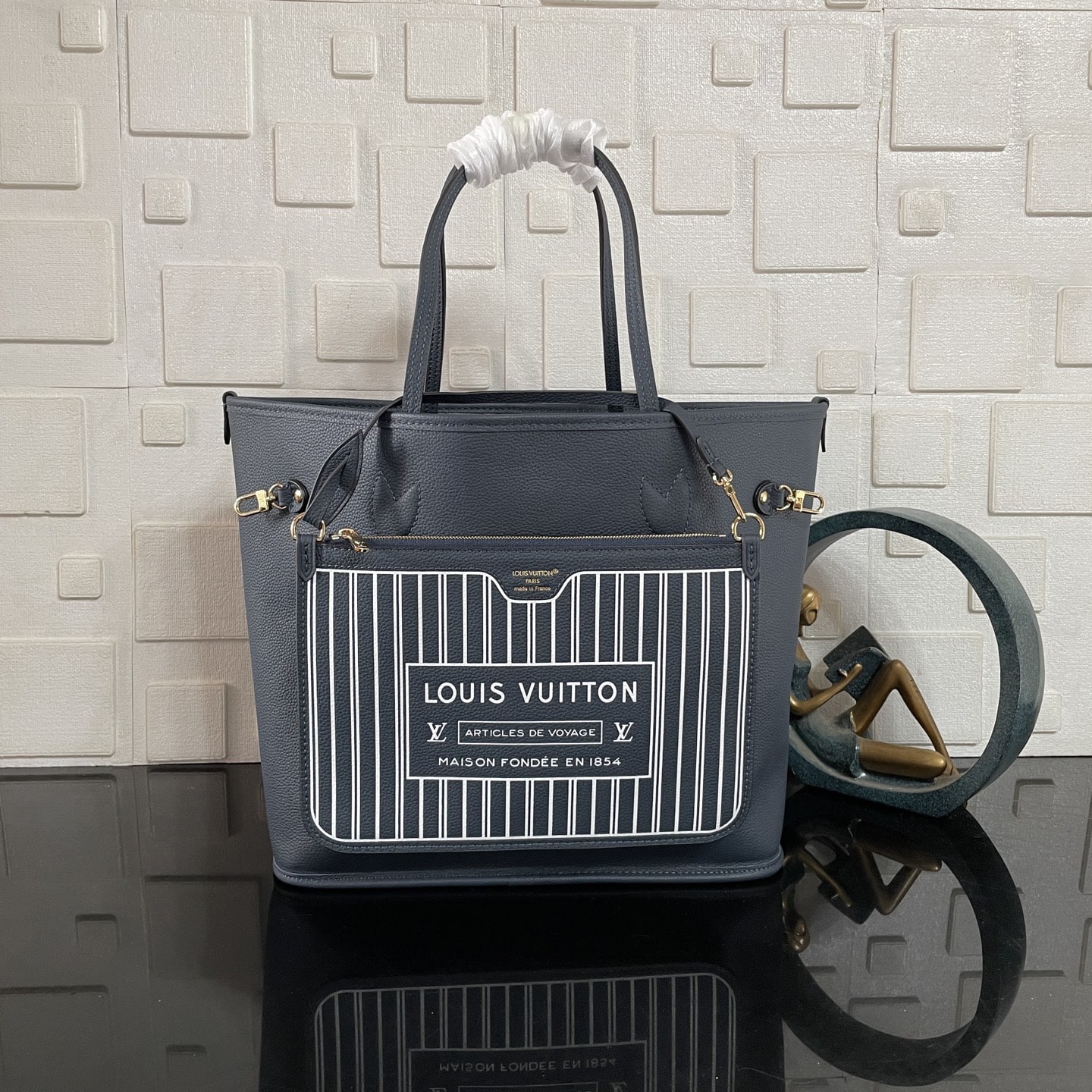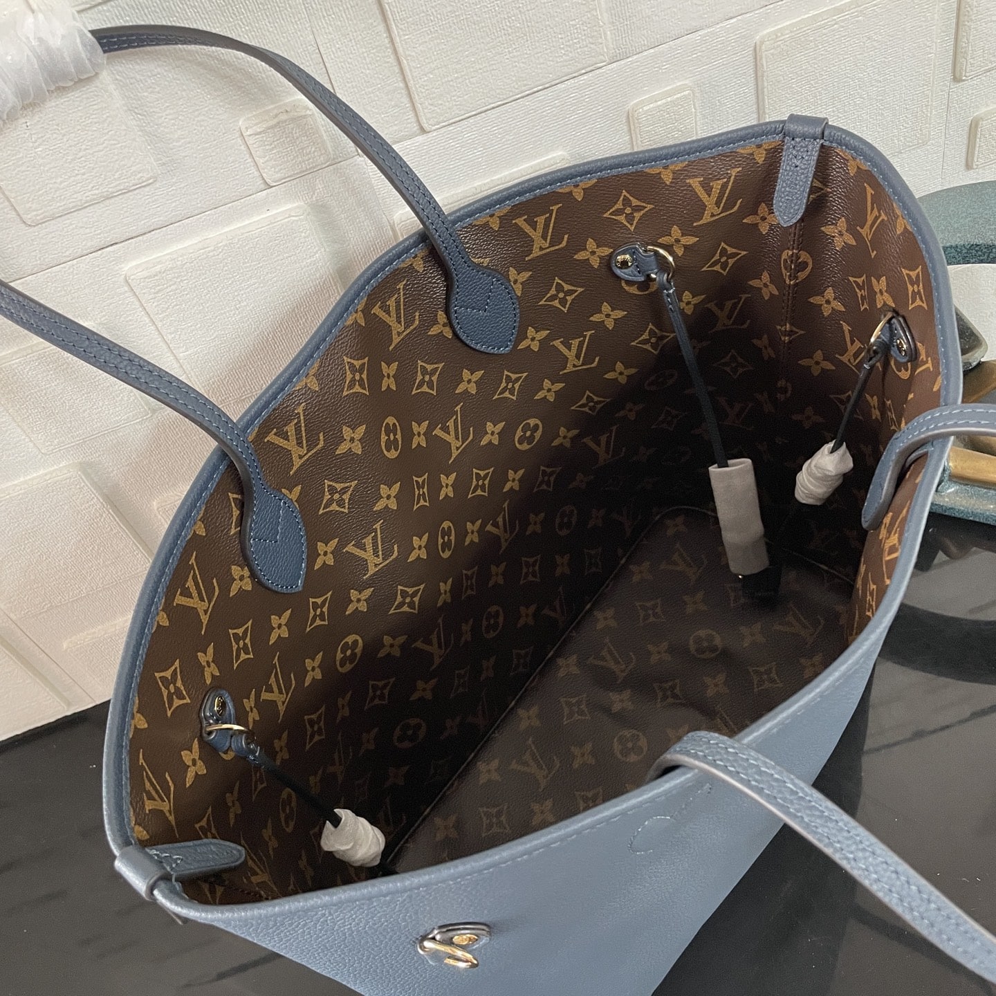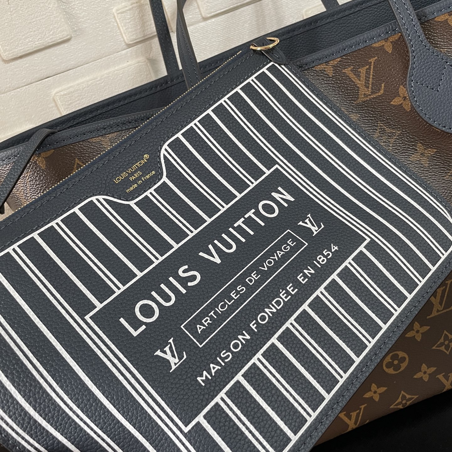 [Super Vip 1:1] Louis Vuitton Neverfull Inside Out MM Bag Navy Blue 31Cm M14994