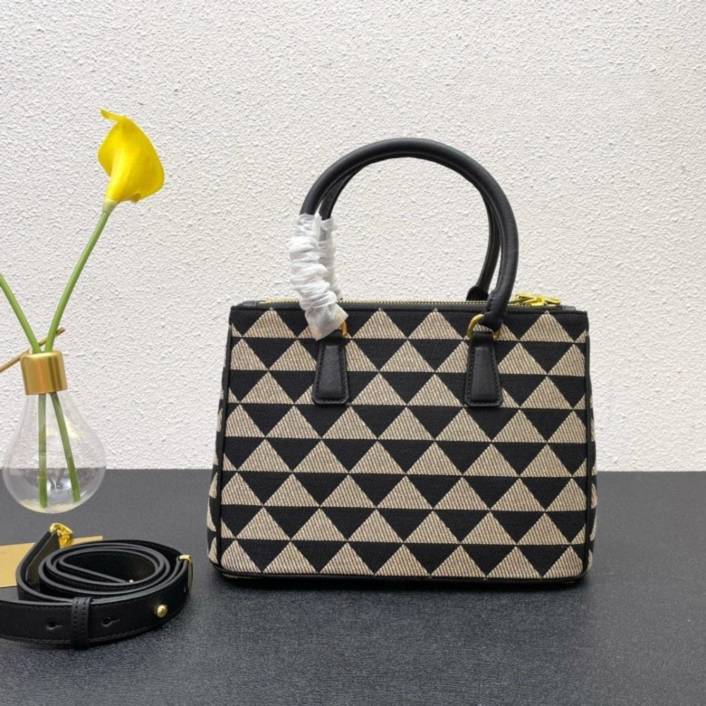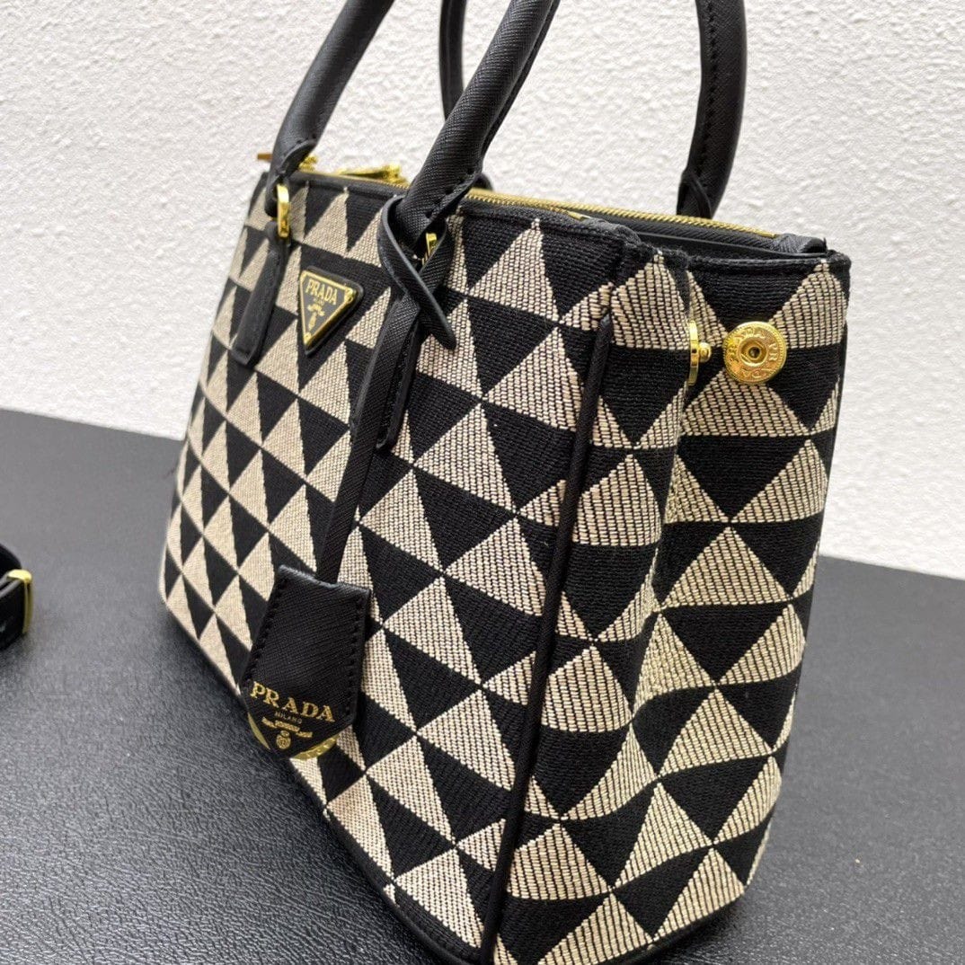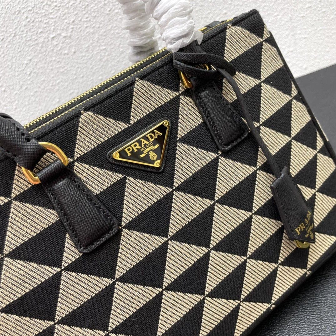 [Super Vip 1:1] Prada Galleria Medium Symbole Embroidered Fabric Bag Black And Beige 28Cm 1Ba863 2Fkl F0Y30 V Ooo