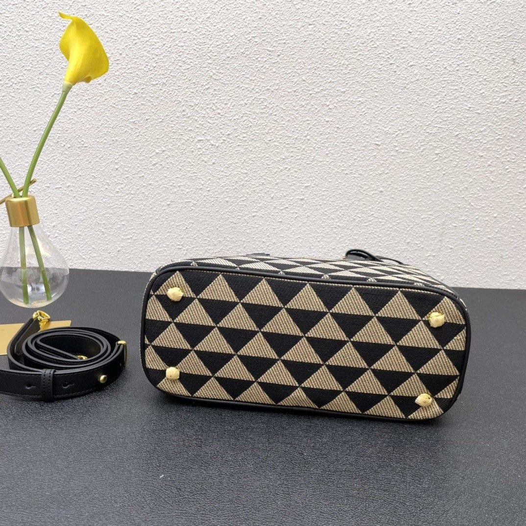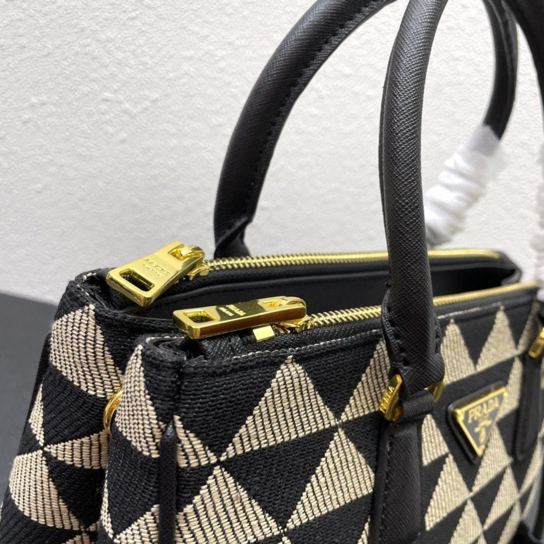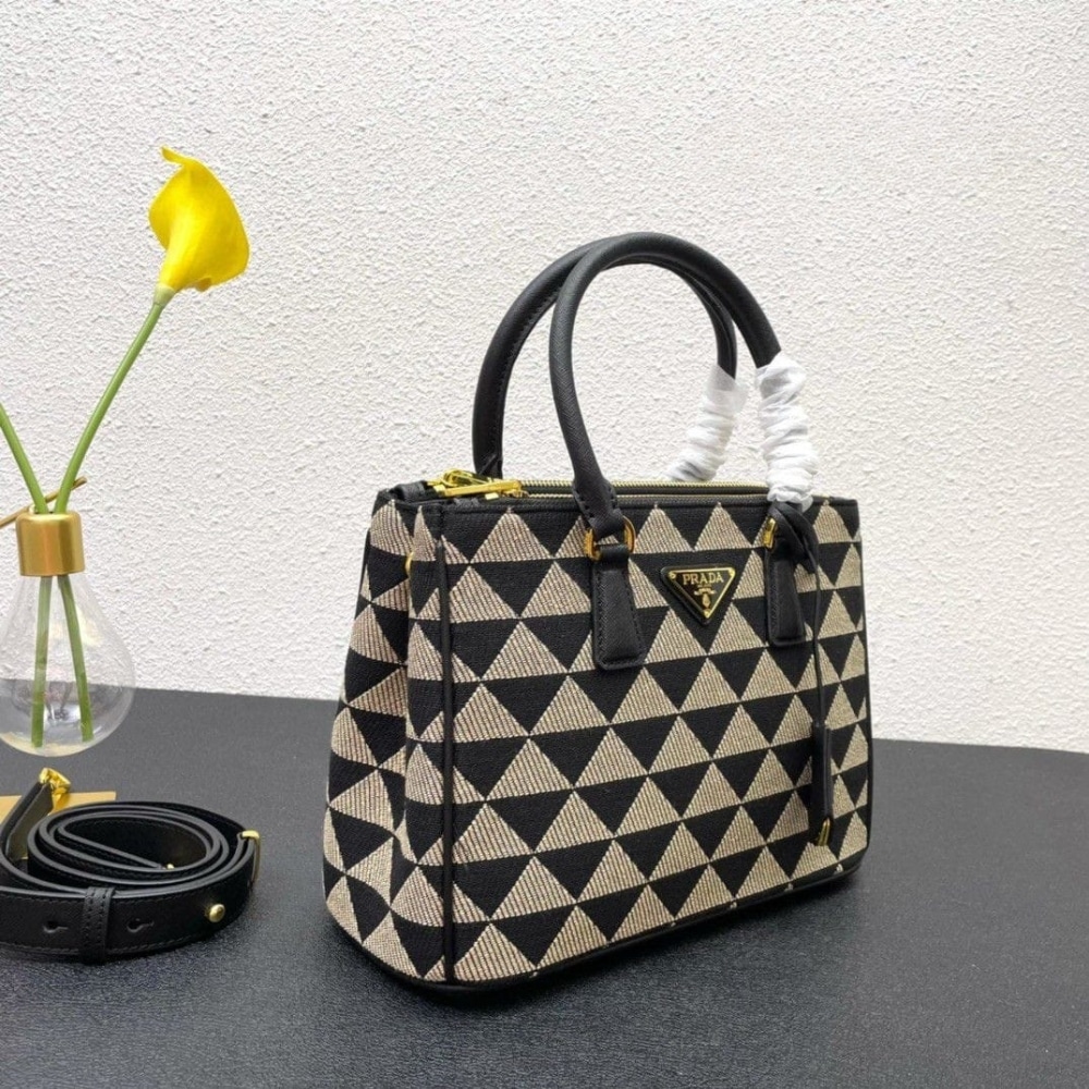 [Super Vip 1:1] Prada Galleria Medium Symbole Embroidered Fabric Bag Black And Beige 28Cm 1Ba863 2Fkl F0Y30 V Ooo