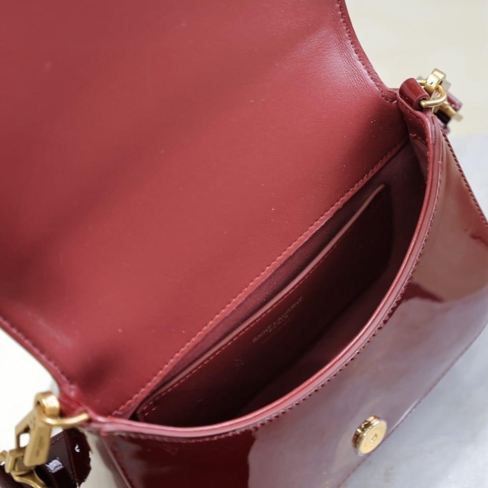 [Super Vip 1:1] Saint Laurent Mini Voltaire Top Handle Bag In Patent Leather Dark Red Wine 21Cm 800846Bmiiw6413