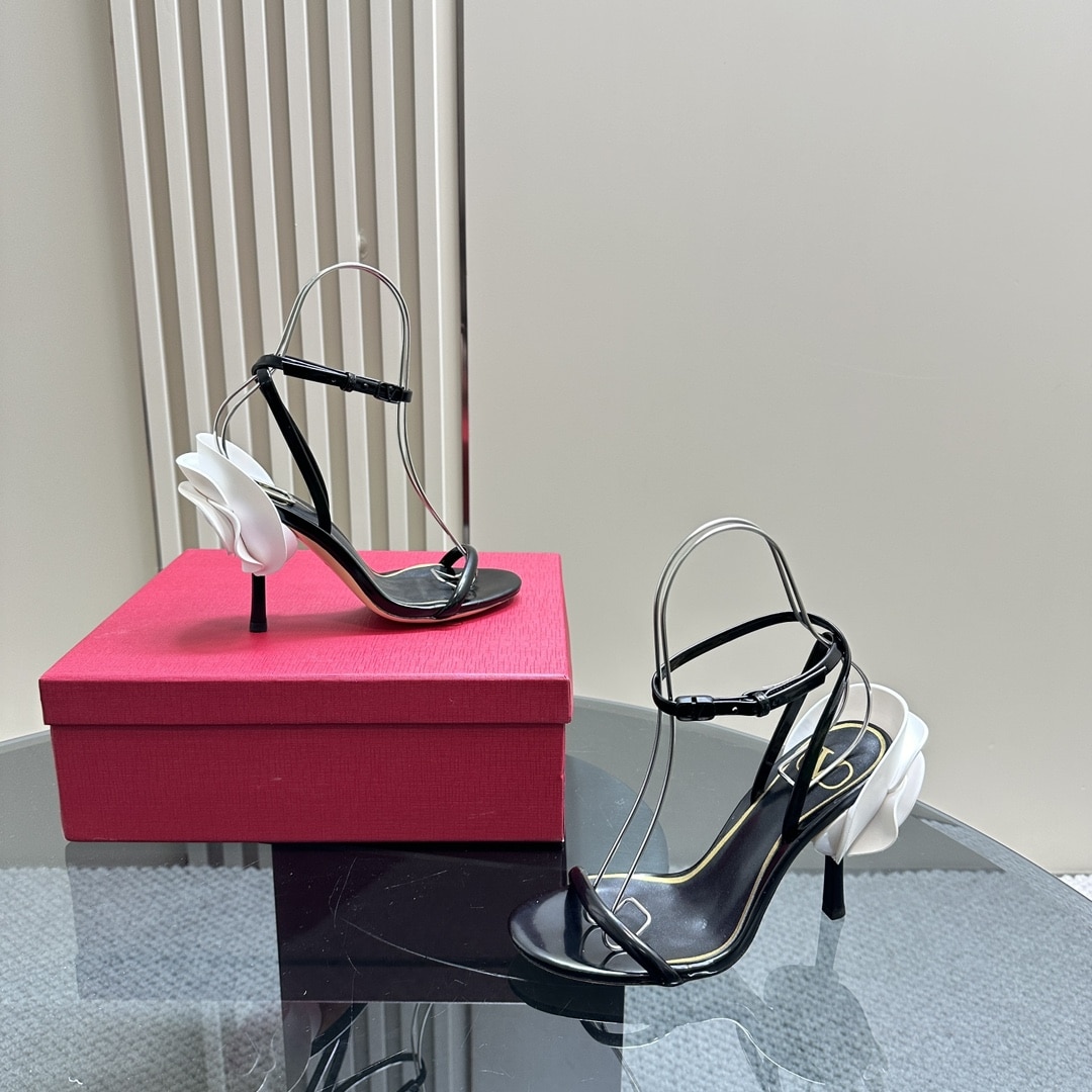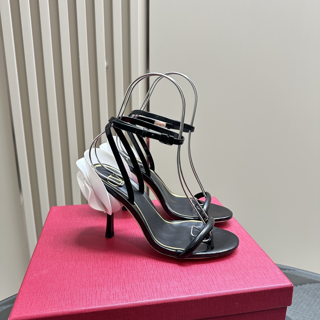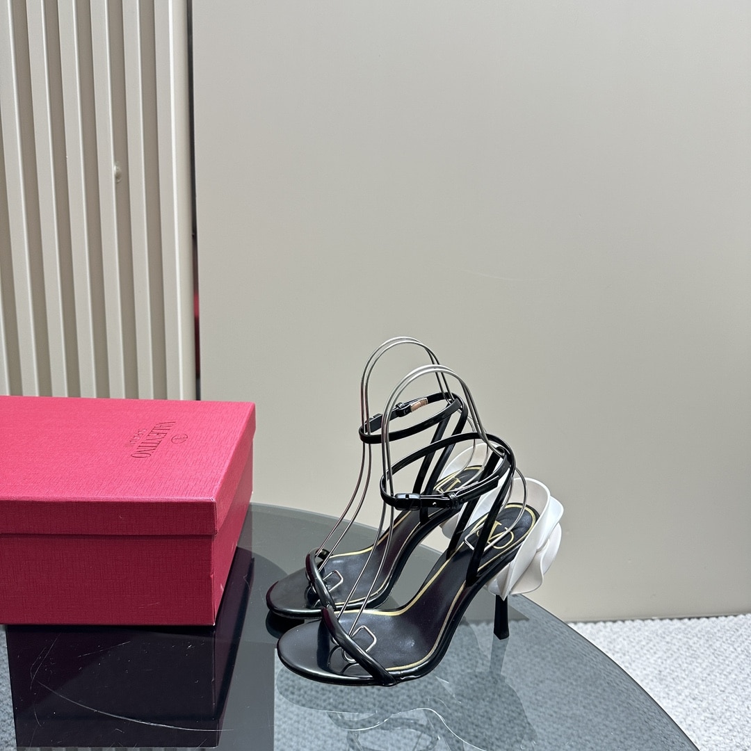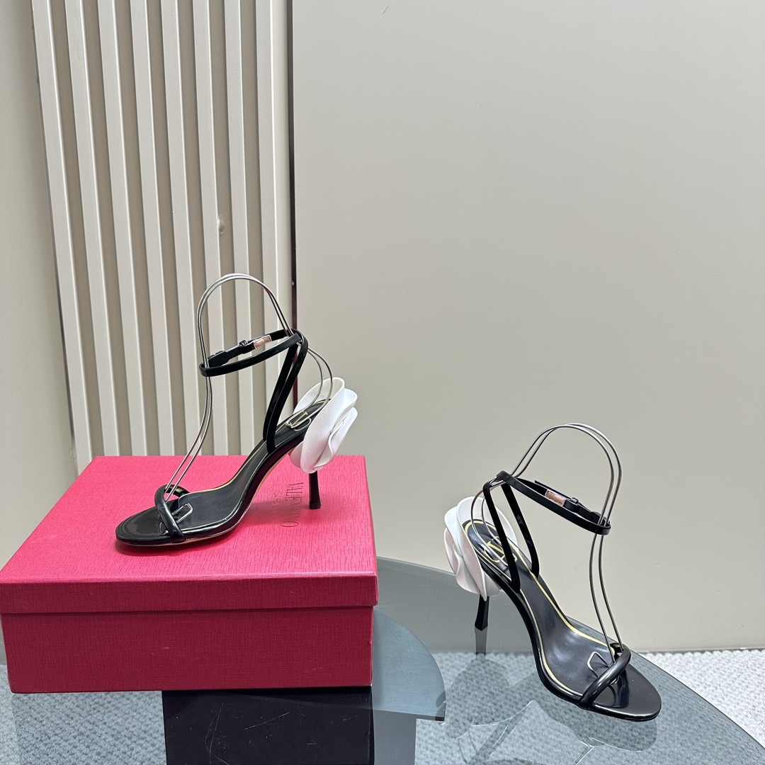 Valentino Garavani Archive Roserouche Leather High Heel In Black
