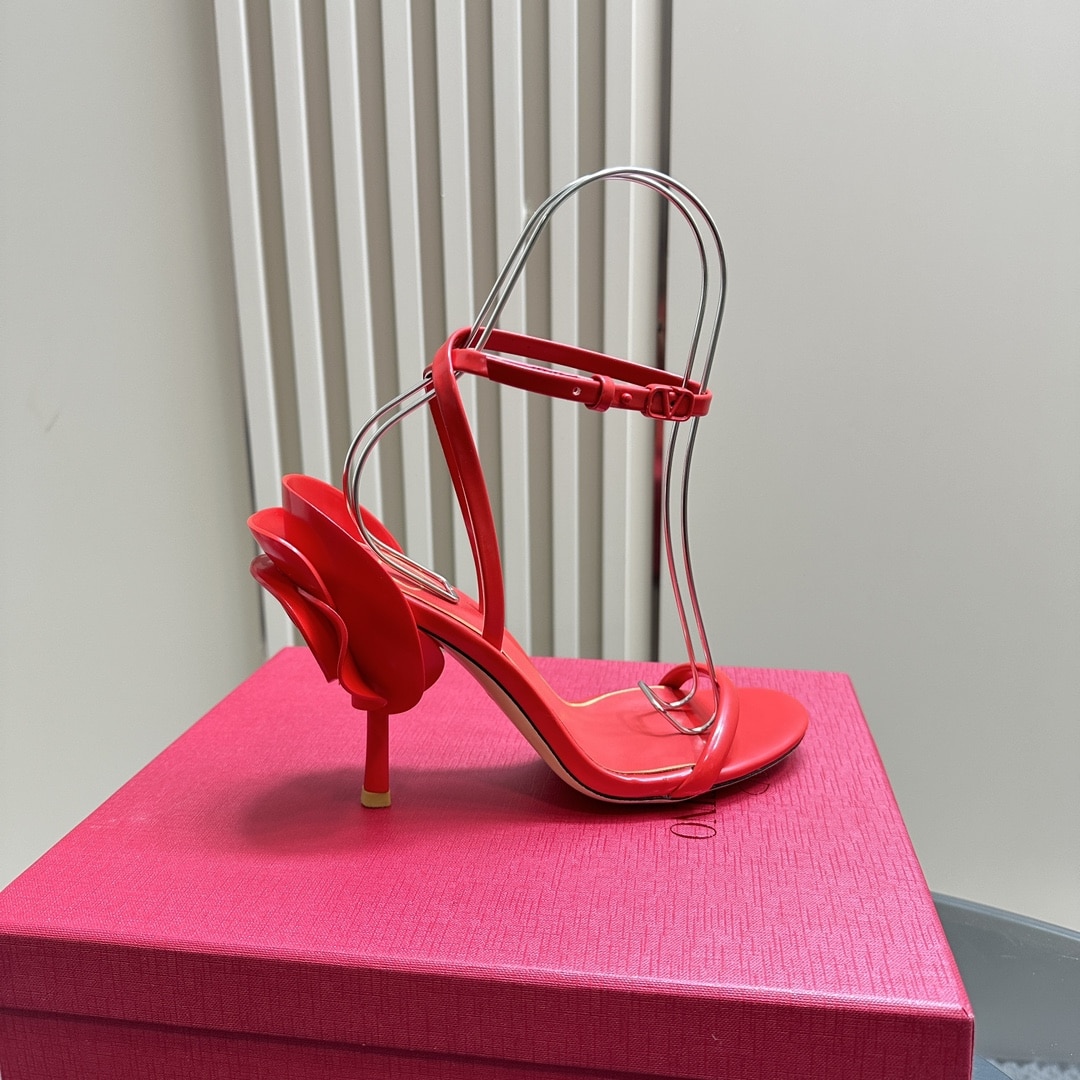 Valentino Garavani Archive Roserouche Leather High Heel In Red