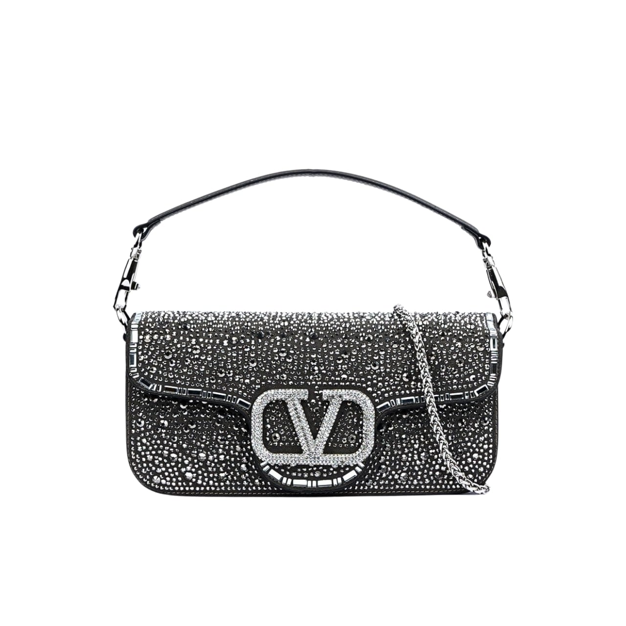 Valentino Garavani Locò Shoulder Bag With Rhinestones Black 28Cm
