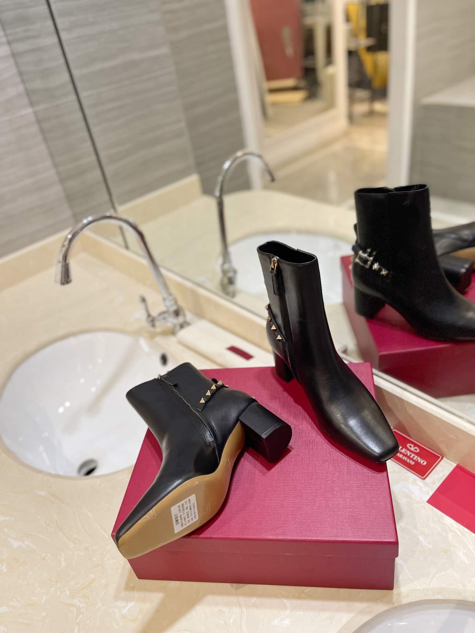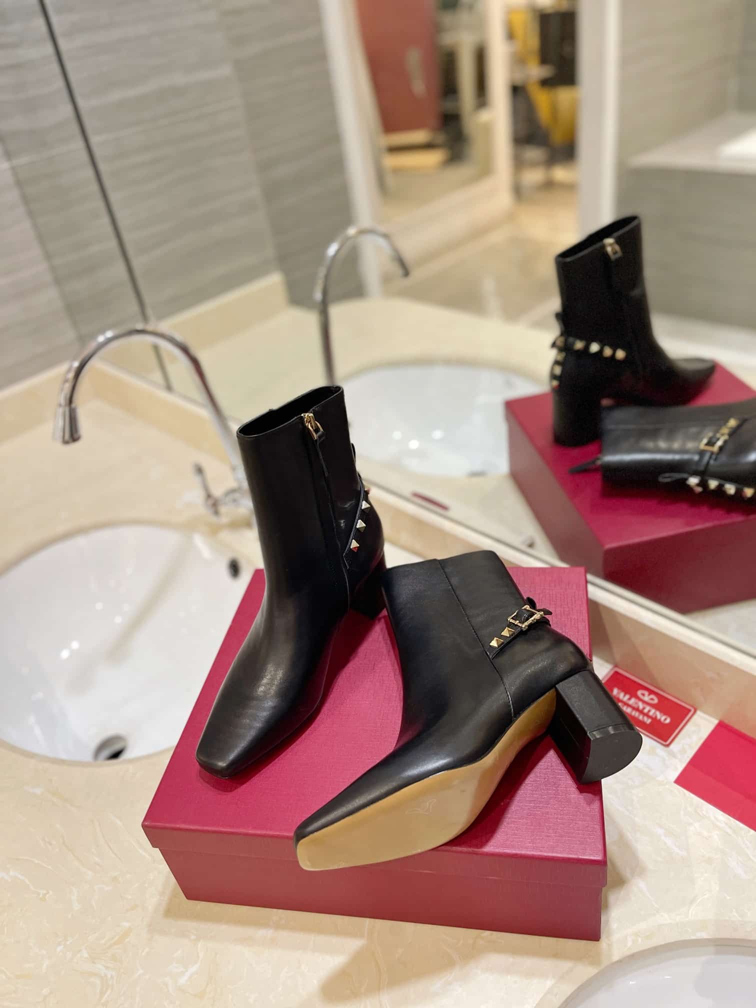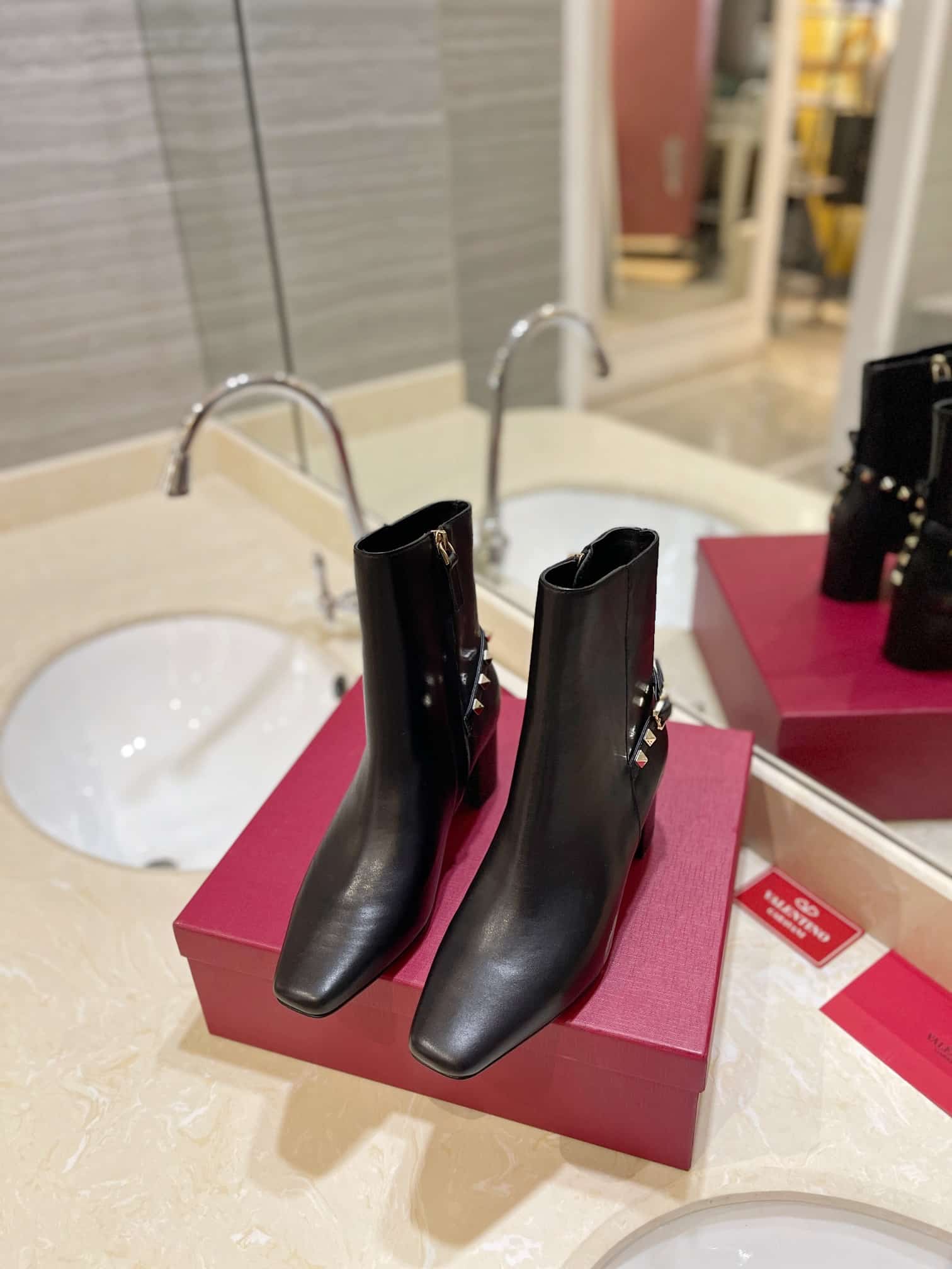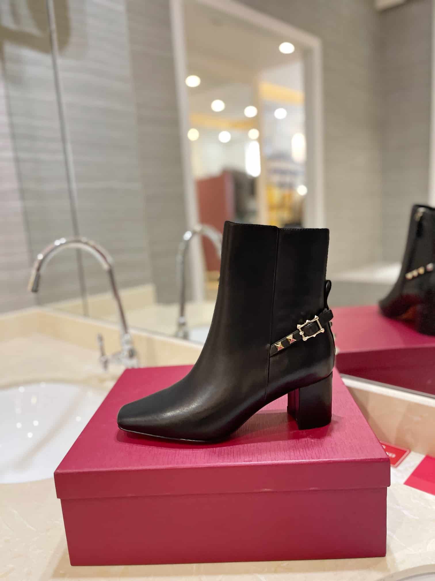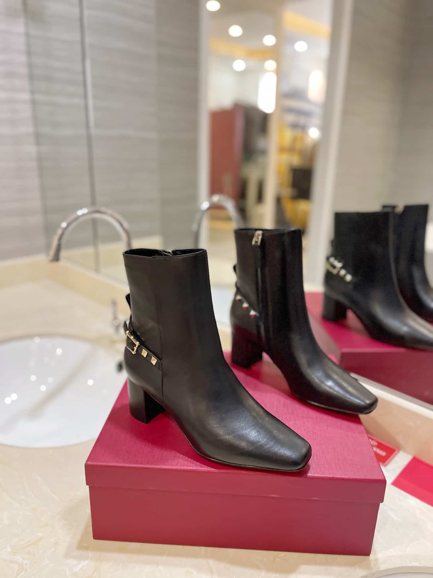 - Square toe ankle boot in nappa