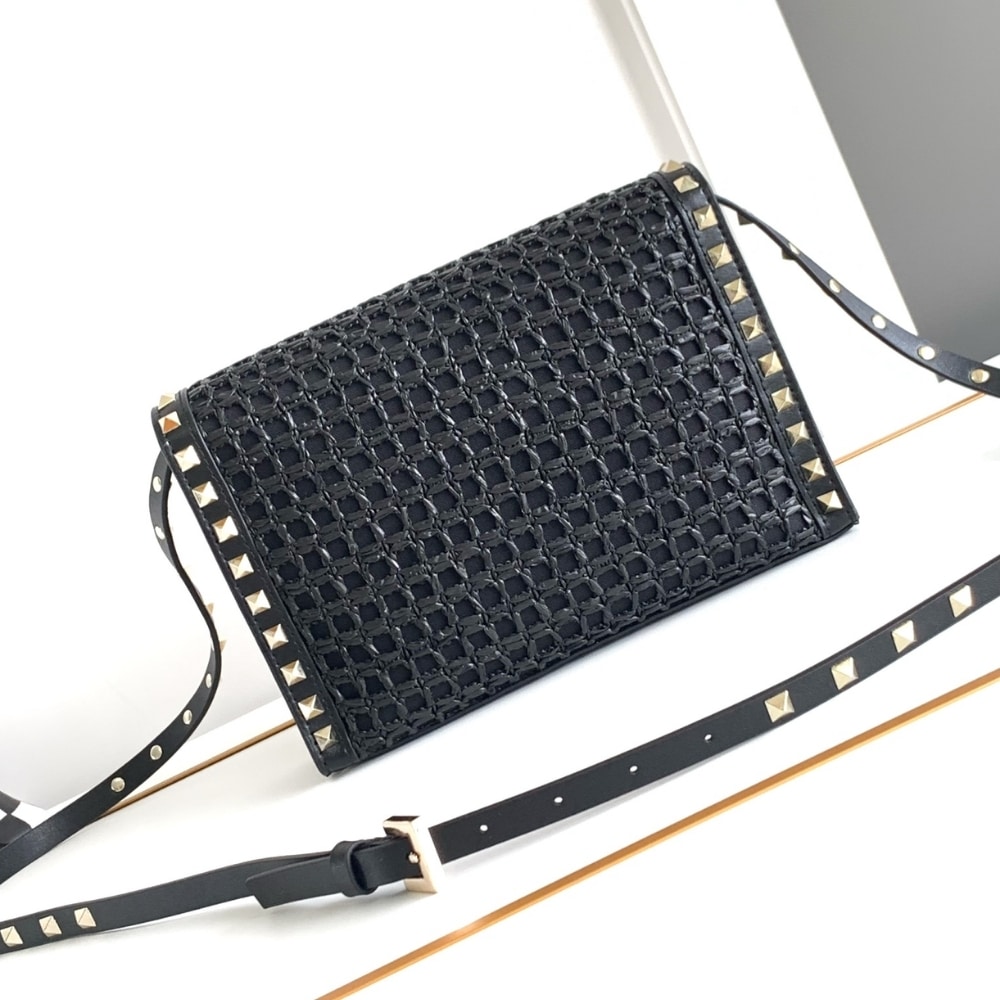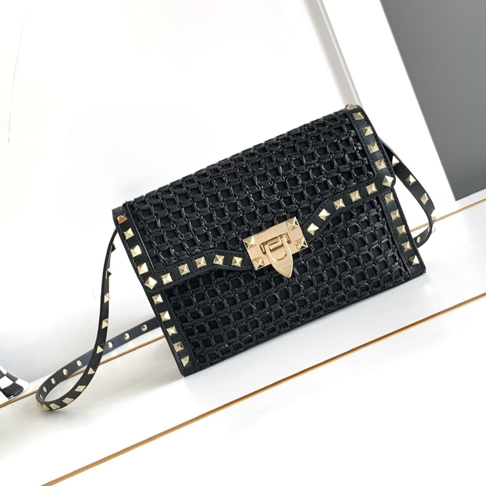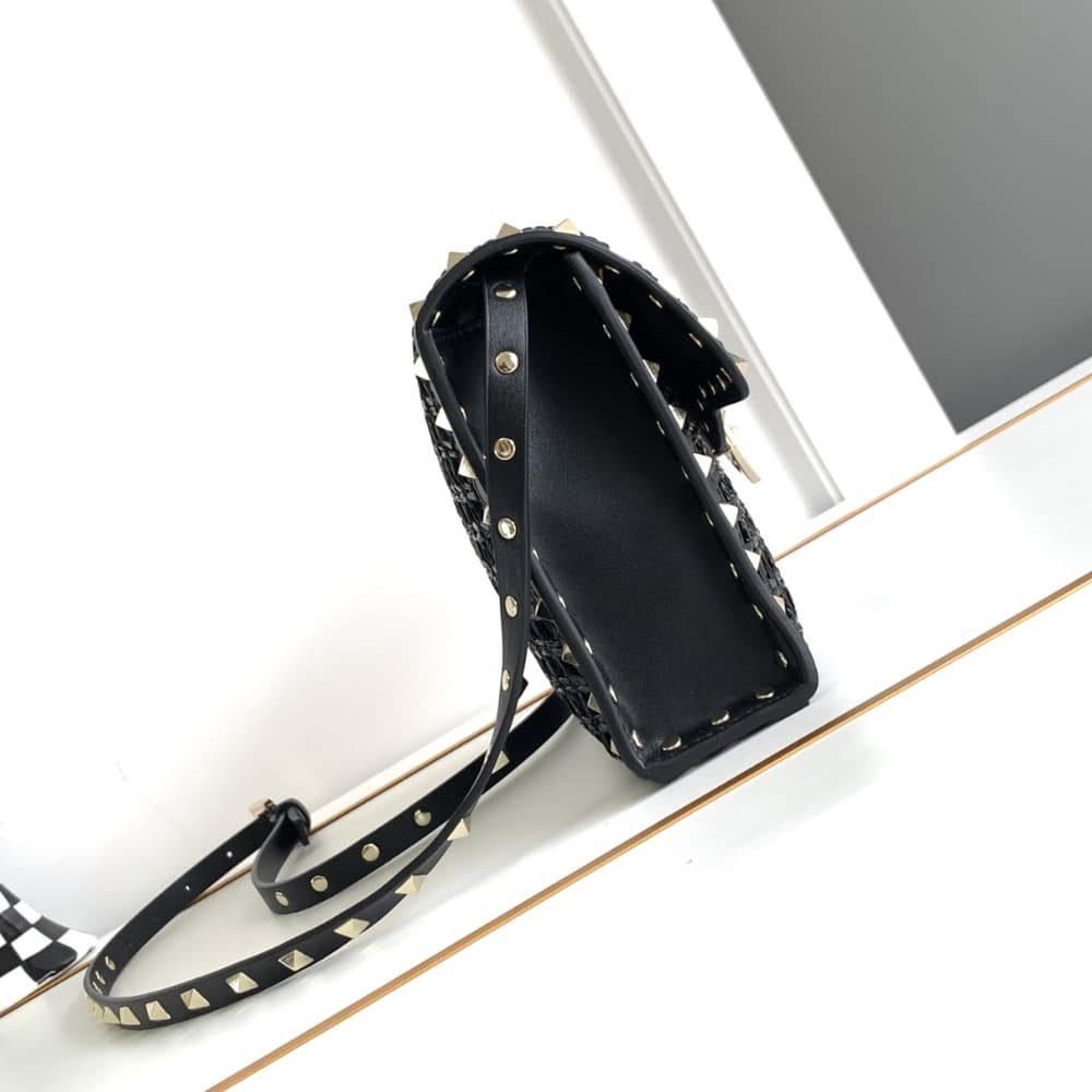 Valentino Garavani Rockstud Small Raffia Shoulder Bag Natural 22Cm