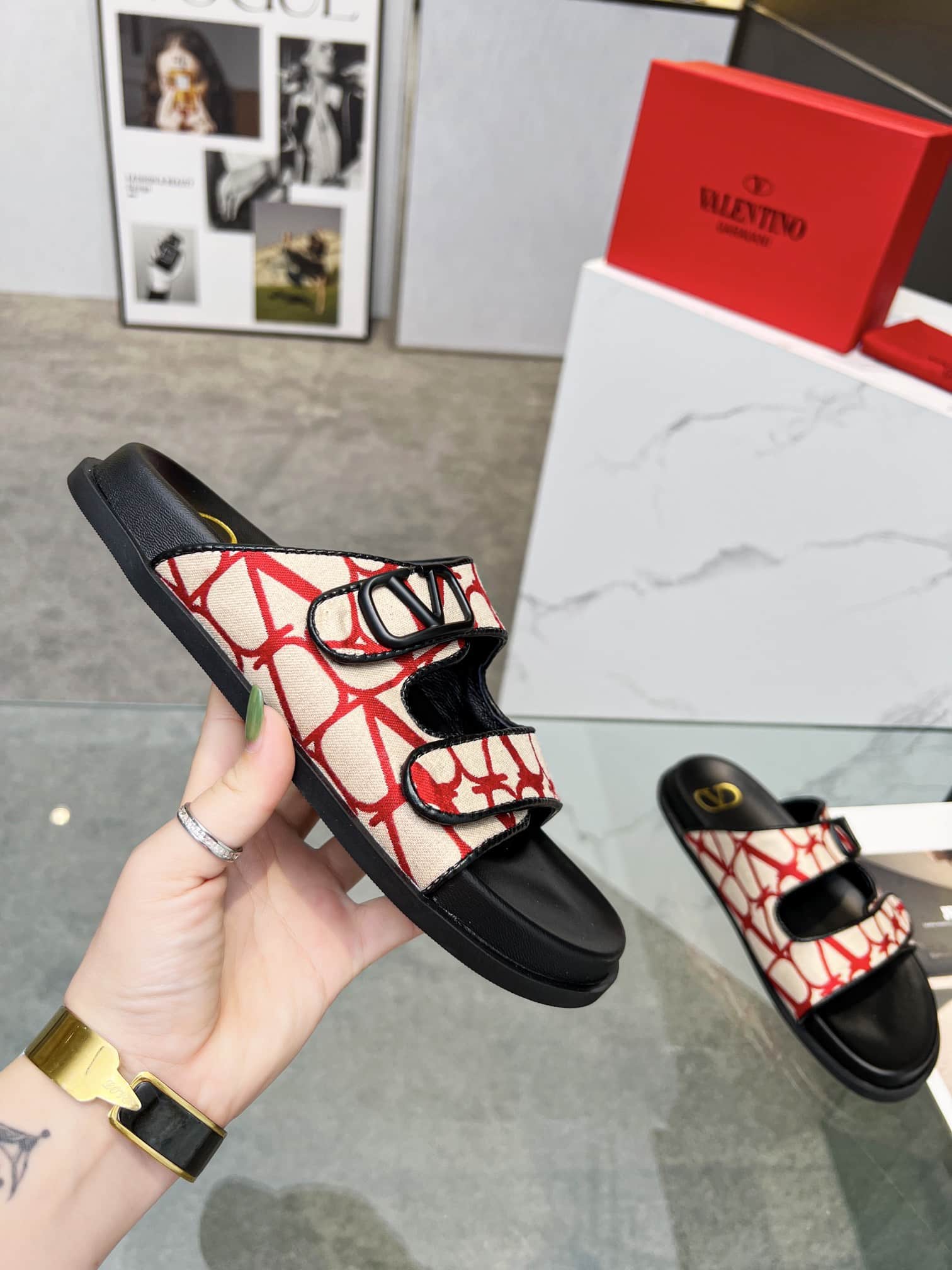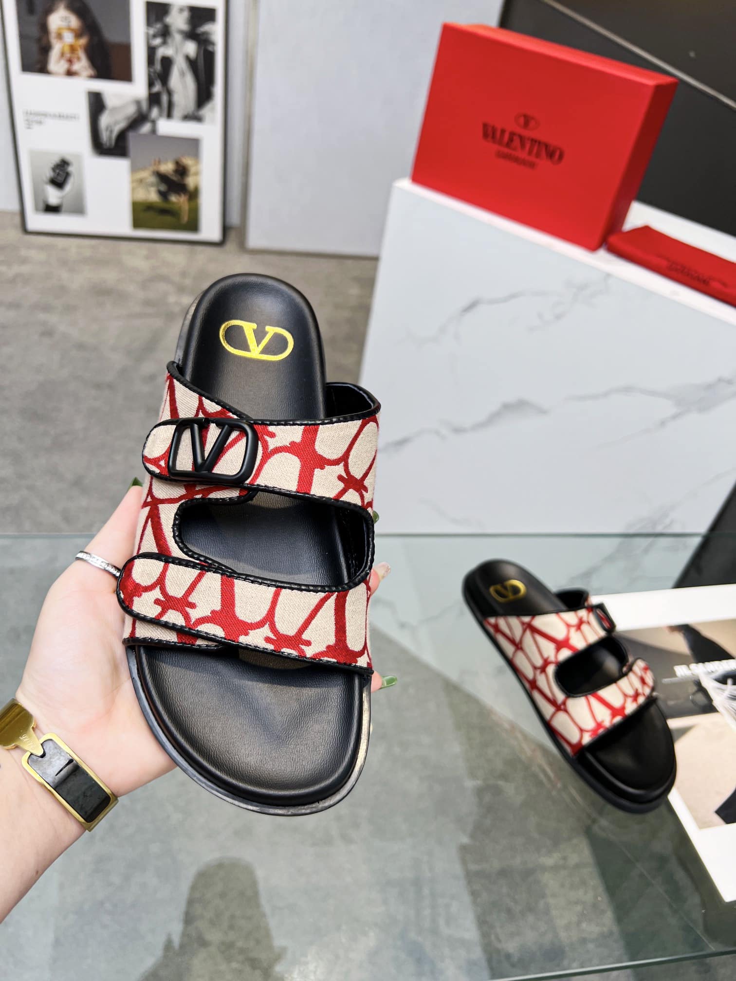 Valentino Garavani Vlogo Toile Iconographe Sandal Red