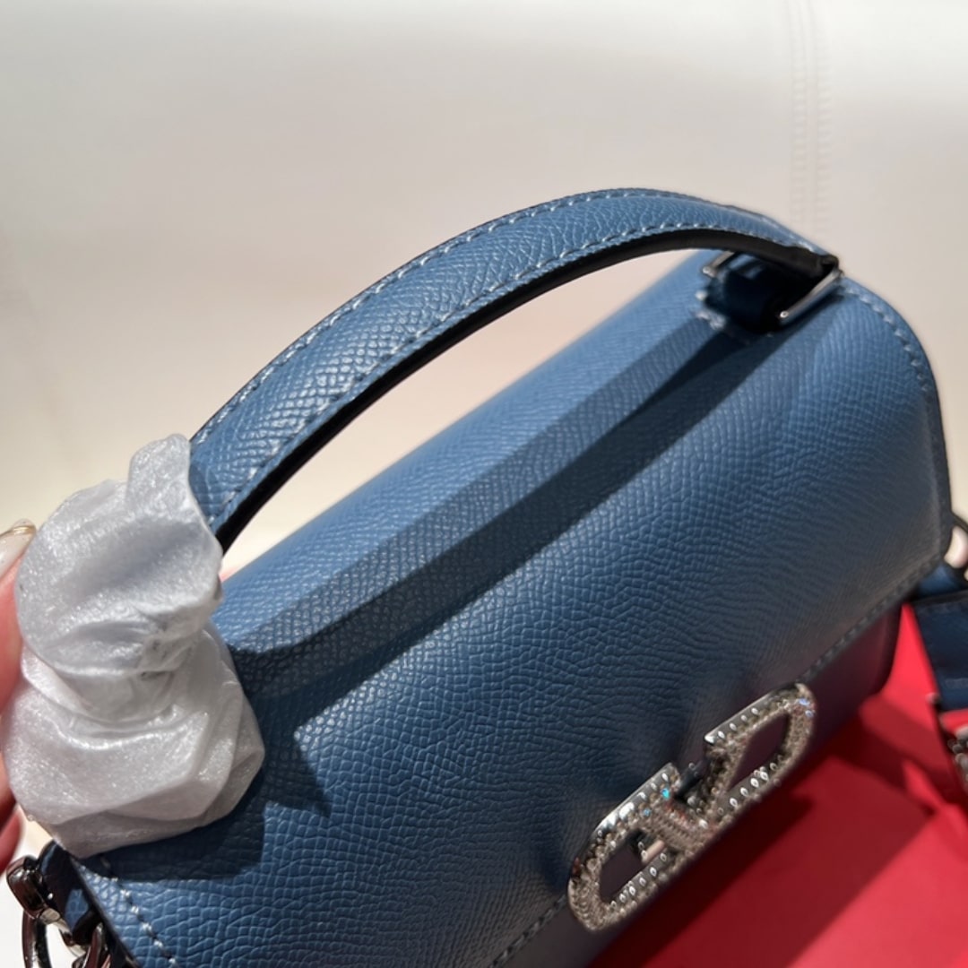 Valentino Garavani//Vsling Crystal Embellished Leather Handbag//Blue//18cm