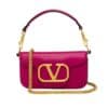 This Valentino Locò Small Shoulder Bag is crafted in smooth leather in a striking rose violet tone, finished with the iconic gold VLogo and chain strap. Designed in a compact 20cm size, it’s perfect for day-to-night styling while carrying essentials. A bold yet elegant luxury designer shoulder bag that elevates any modern wardrobe.