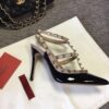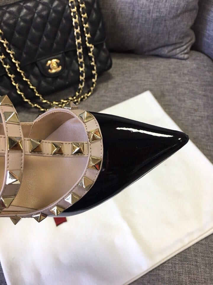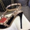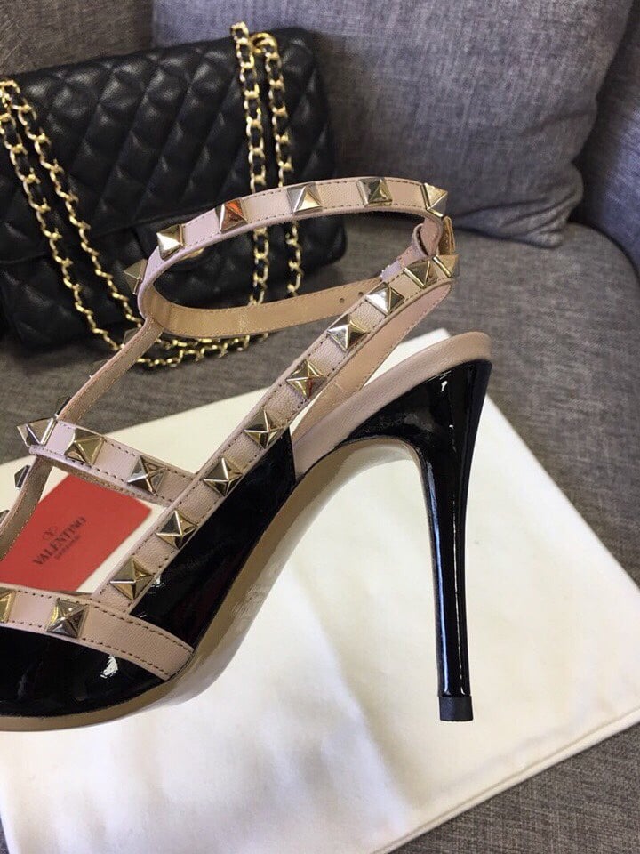 - Powder-color nappa leather piping and ankle straps