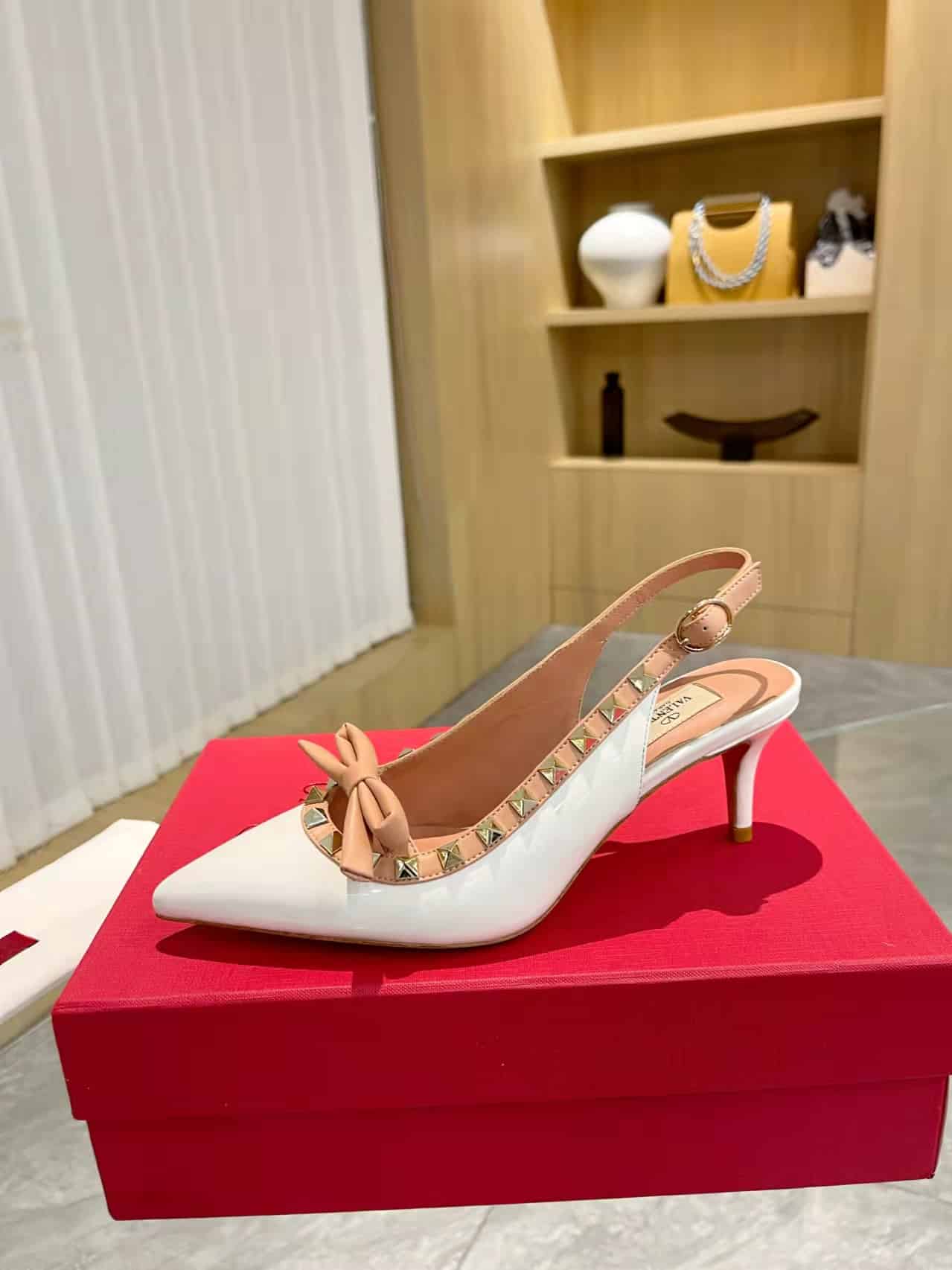 - Valentino Garavani Rockstud Bow patent leather slingback pump