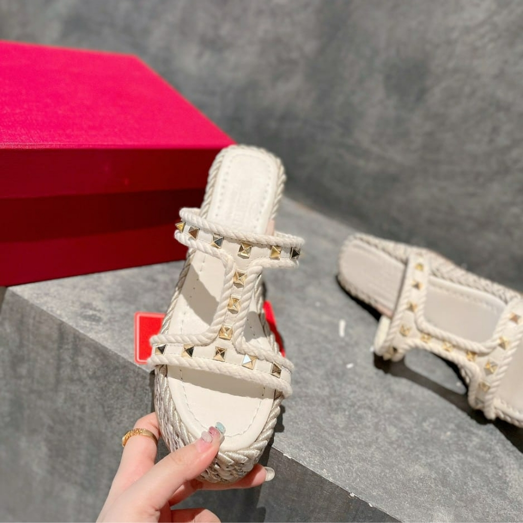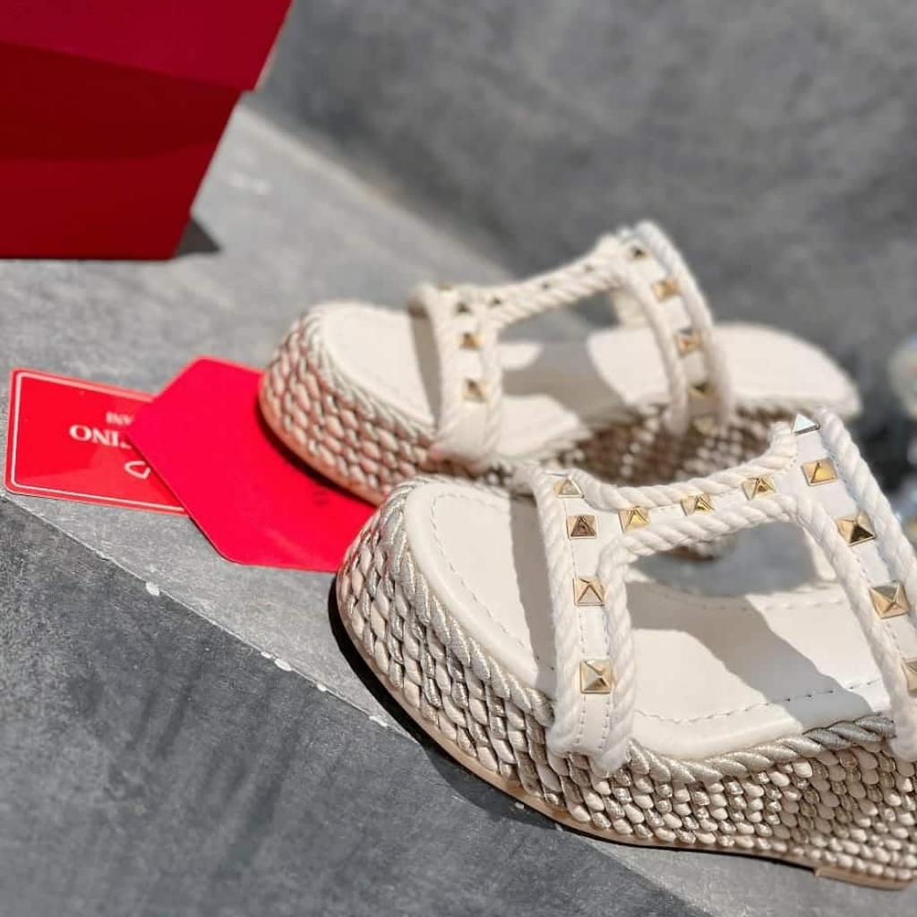 1:1 Replica Shoes – Valentino Rockstud Laminated Nappa Wedge Sandal Natural 4W2S0GI5DYM YBS
