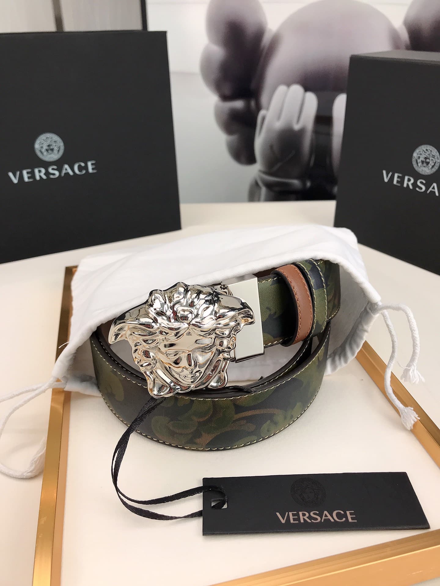 Versace La Medusa Leather Khaki Silver Metal 4Cm