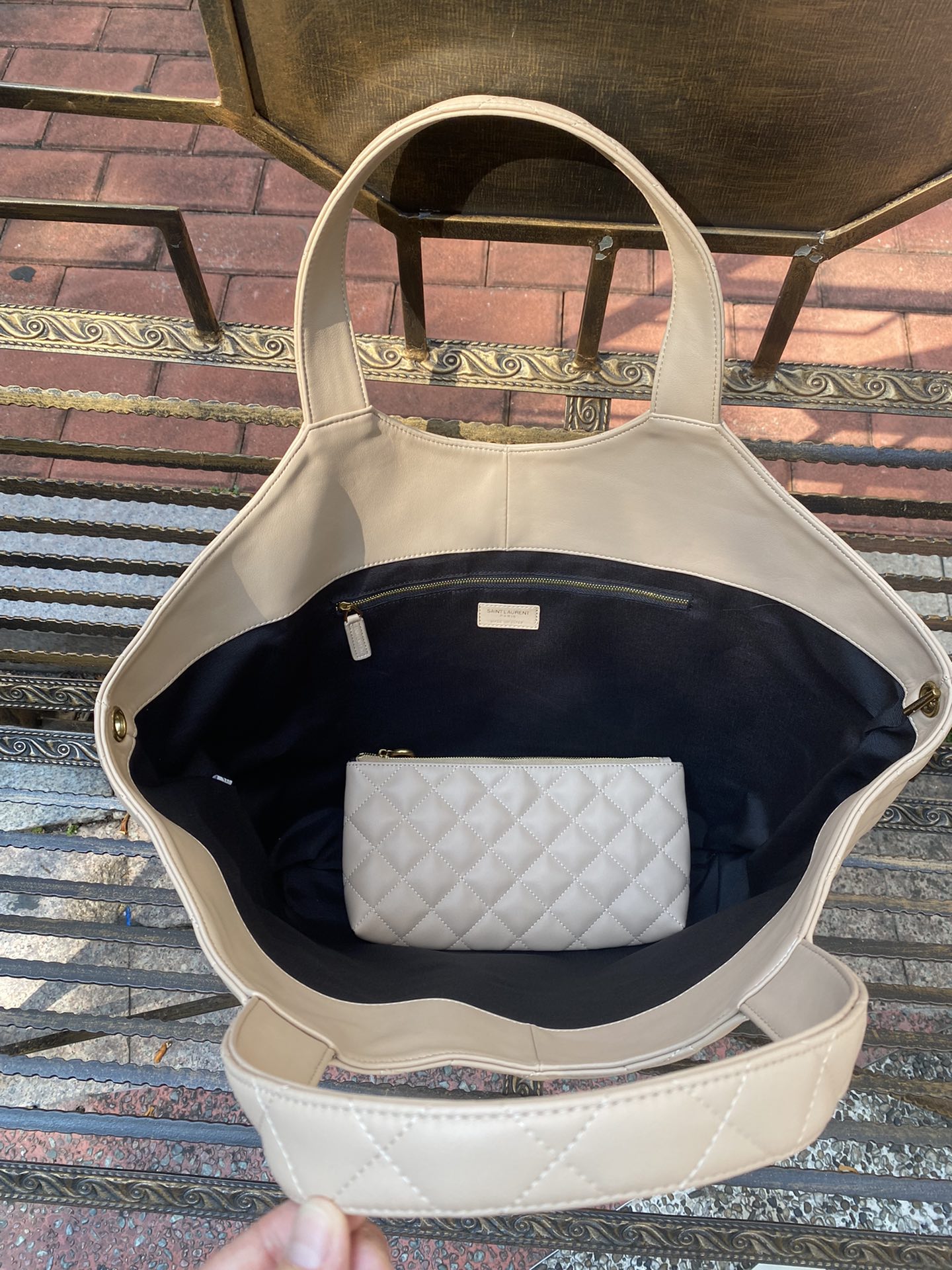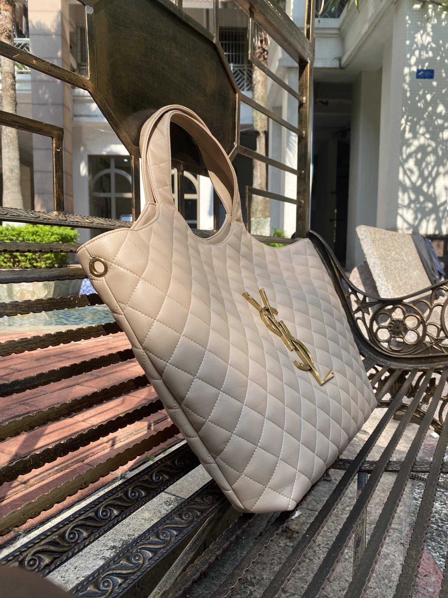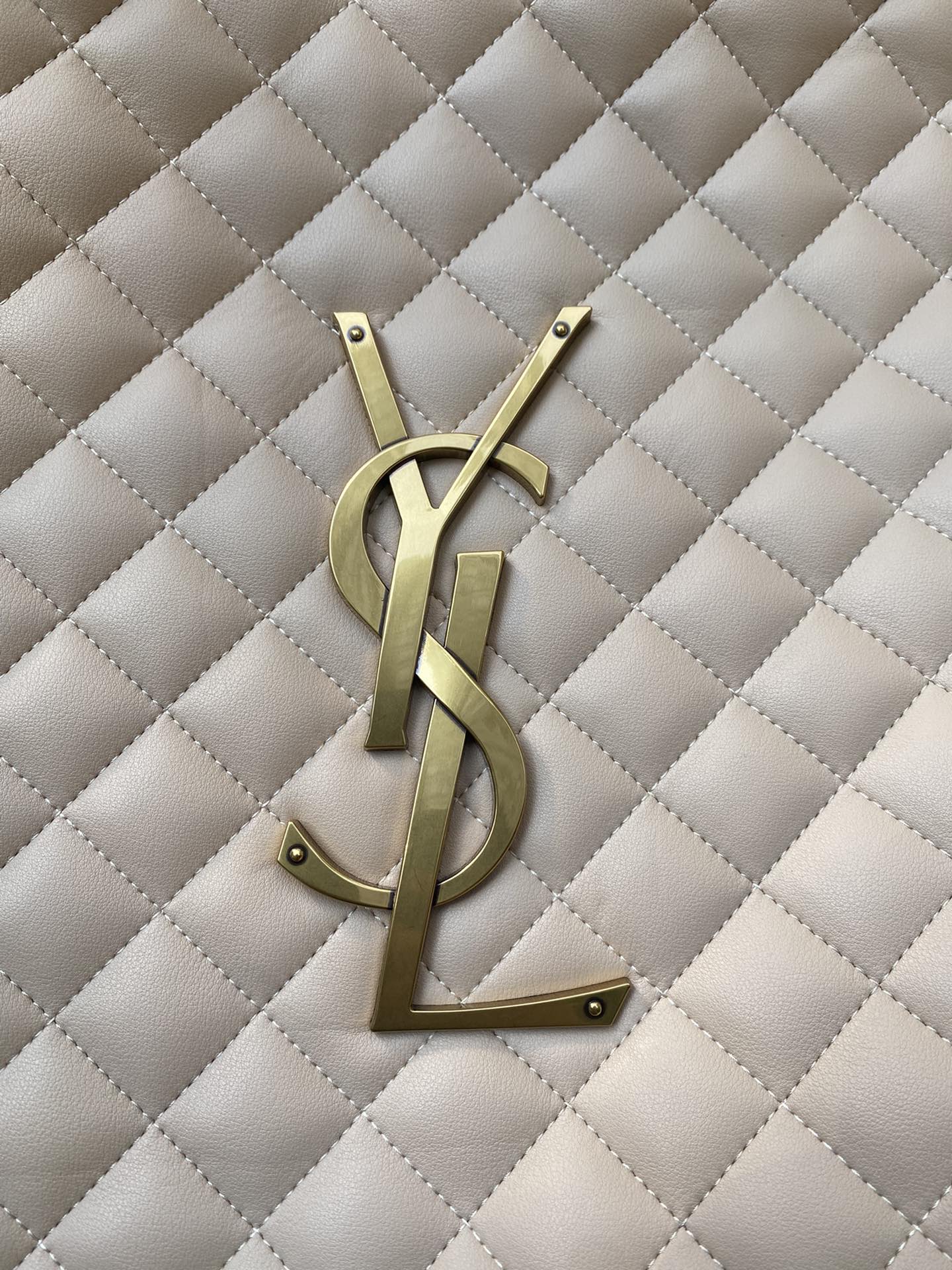 YSL ICARE MAXI SHOPPING BAG IN QUILTED SIZE 58CM LIGHT BEIGE
