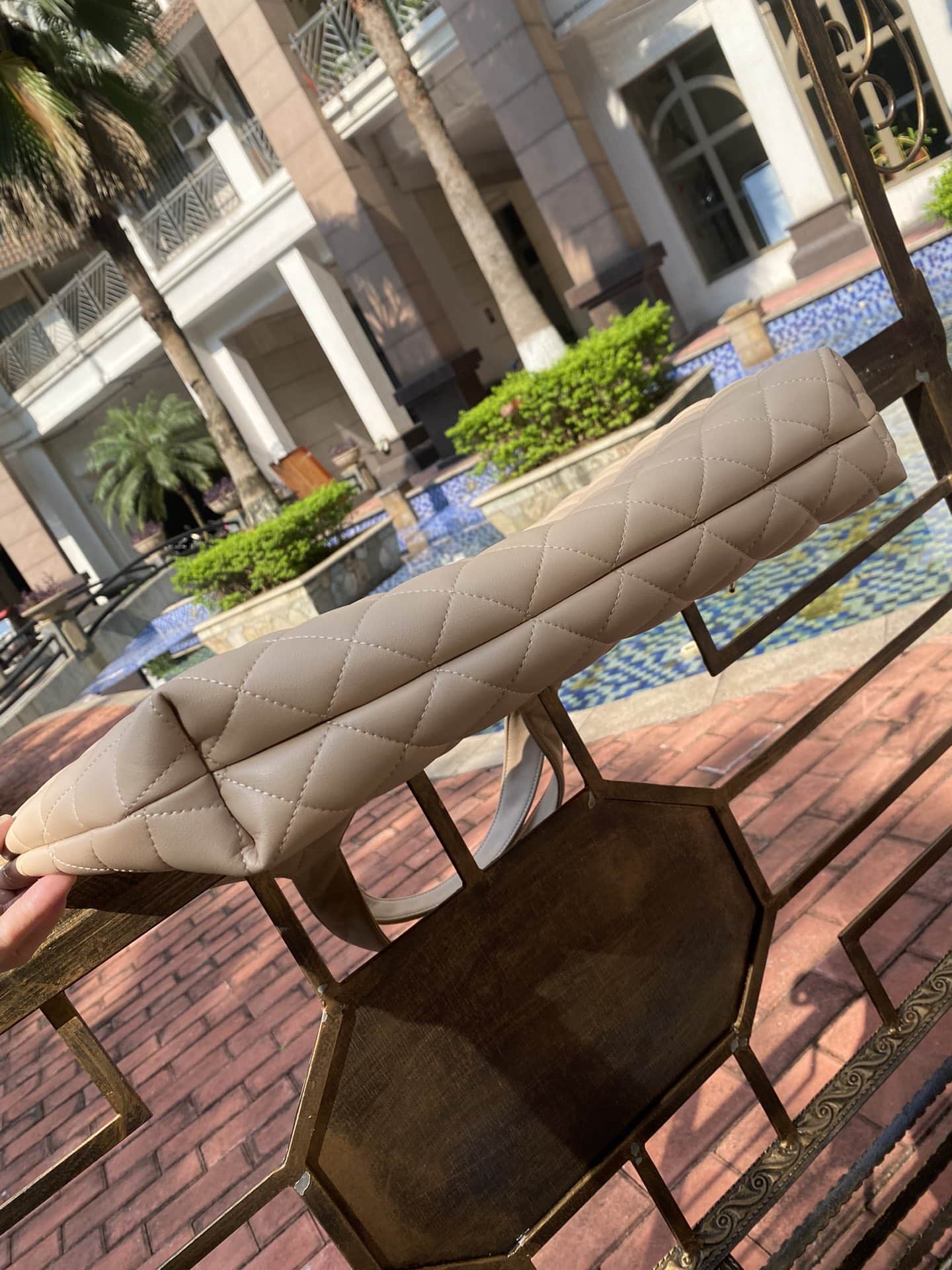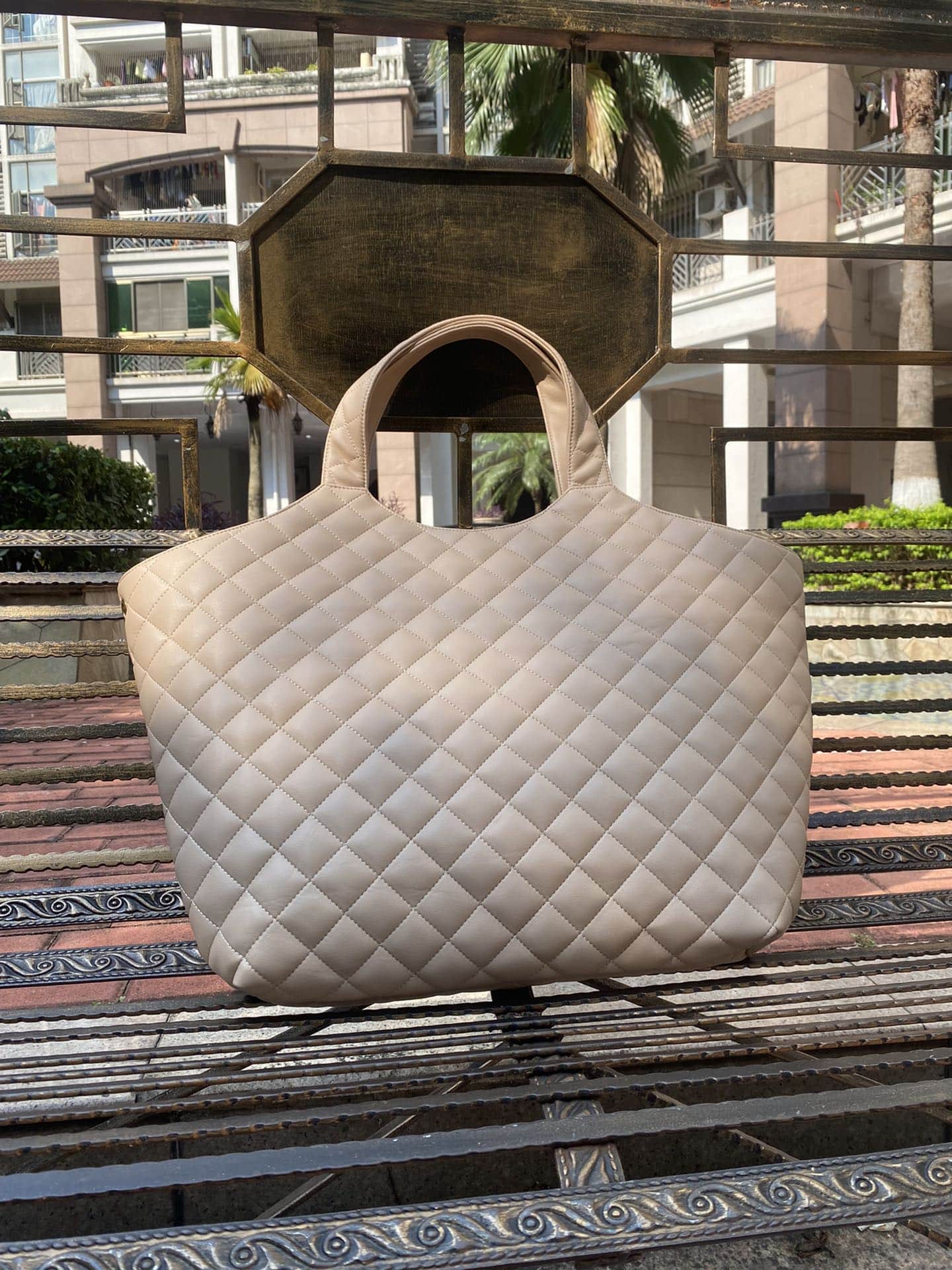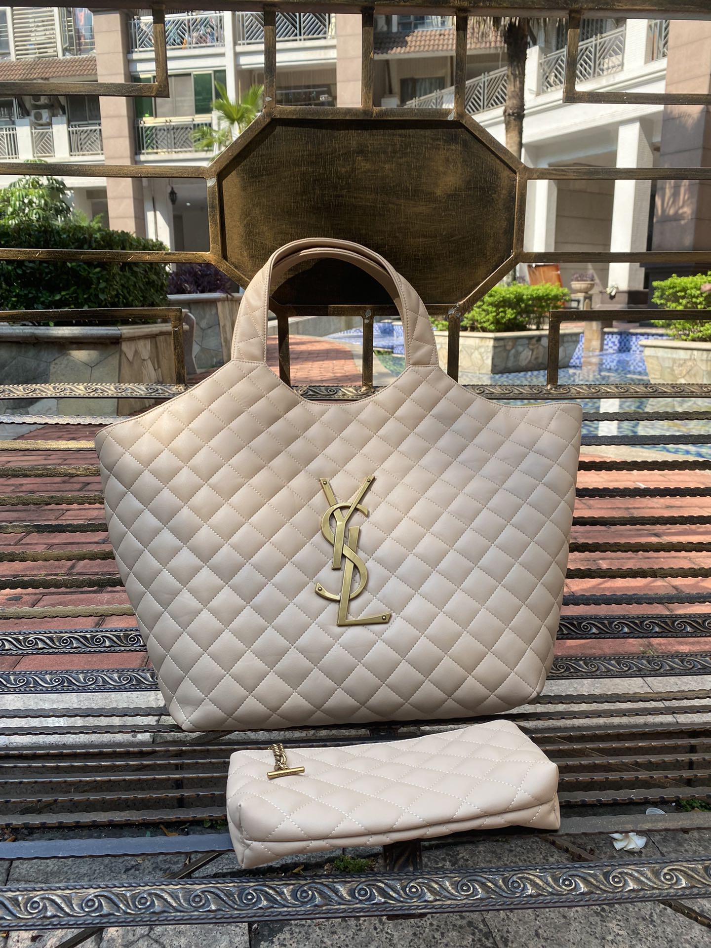 YSL ICARE MAXI SHOPPING BAG IN QUILTED SIZE 58CM LIGHT BEIGE